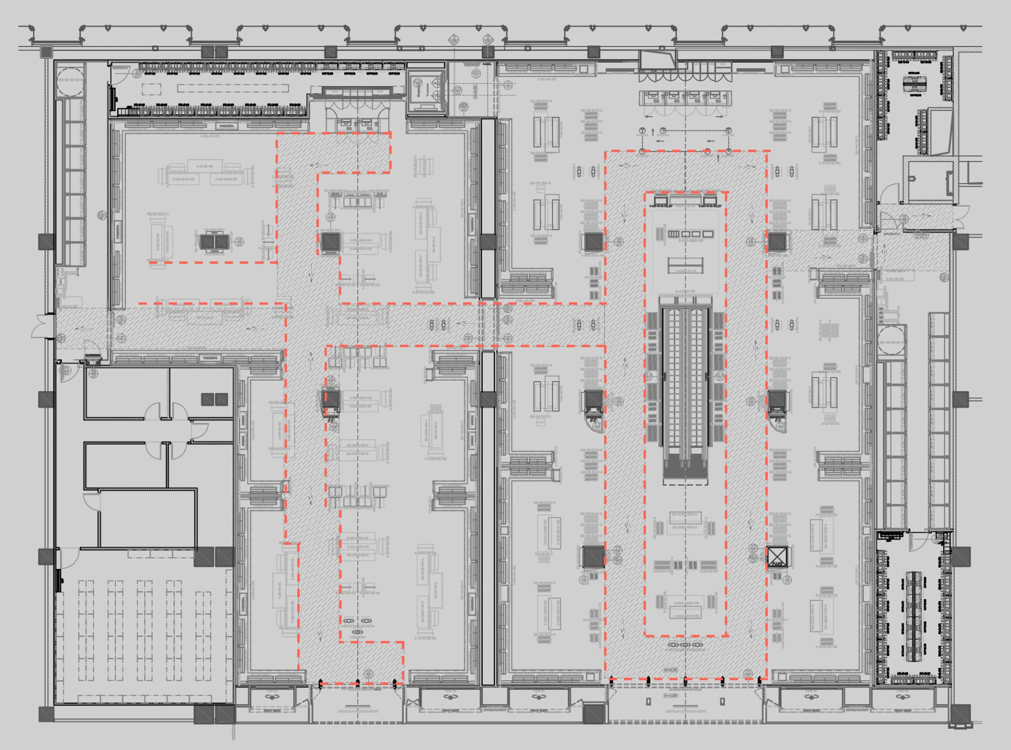 Ошибка: Все проходы между оборудованием сделаны одинаковыми по ширине, либо они критически узкие.