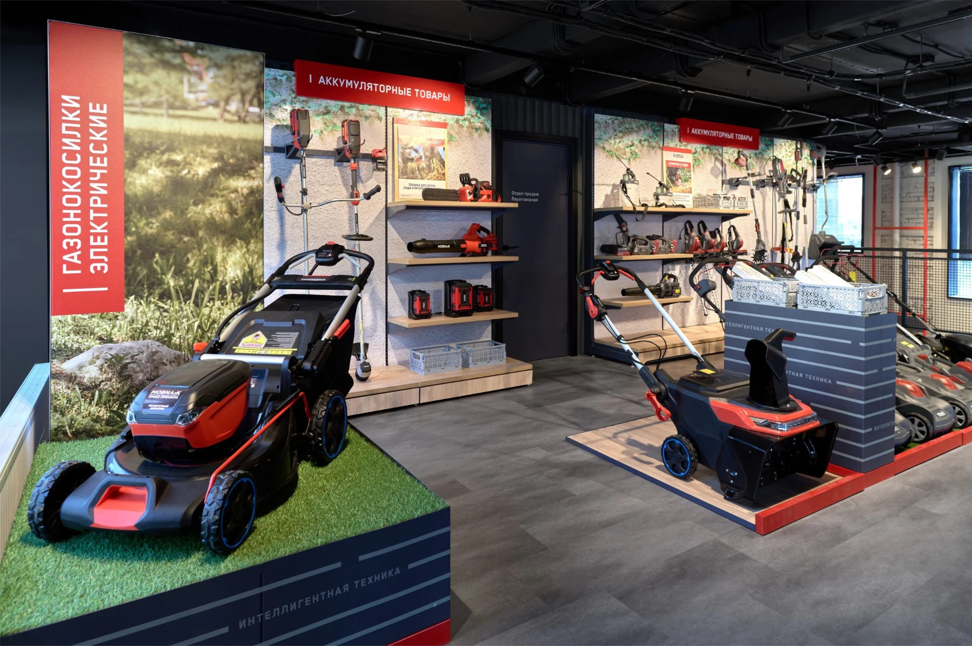 Решение: Для площадей более 600 м² важна иерархия путей. Центральный проход должен быть широким — минимум 1200 мм, второстепенные могут быть уже — от 900 мм. Это вопрос не только комфорта, но и программирования поведения. Человек интуитивно выбирает более широкую дорогу и идет вглубь зала, даже если маршрут извилист (вспомните лабиринты магазина ИКЕА). Шириной проходов вы направляете клиента в нужные вам зоны. Ошибка: Все вешала и гондолы в зале находятся на одном уровне. Суть: Взгляд посетителя скользит «по верхам» оборудования, как по водной глади. Глазу не за что зацепиться, и визуальная скука наступает очень быстро. Решение: Применяйте принцип «горного ландшафта». В зале должно быть 3–4 уровня высоты: низкие столы, средние рейлы, высокое оборудование, а также кронштейны и полки на стенах. Взгляд должен цепляться за перепады, останавливаться — именно в этот момент появляется интерес к товару. Чем больше таких «крючков» для глаз, тем больше товара увидит клиент. Главное — соблюдать баланс, чтобы не создать визуальный хаос. Ошибка: Полки и кронштейны намертво прикручены к оборудованию и не регулируются. Суть: Зимой вы продаете длинные пальто, летом — топы и шорты. Если оборудование статично, зимой пуховики будут лежать на полу, а летом под короткими вещами будет пустота. Приятного для глаз мало. Решение: Используйте модульные системы-конструкторы для основного торгового оборудования. Островные конструкции также должны регулироваться. Это развязывает вам руки в процессе мерчандайзинга: вы сможете менять сценарии развески и внешний вид зала хоть еженедельно, подстраиваясь под текущую коллекцию. Кейс: Для проекта магазина Motorrika в Москве мы создали именно такое оборудование-конструктор. Абсолютно все элементы (полки, кронштейны) регулируются по высоте. Дополнительно мы разработали сменные магнитные боксы для навигации, POS-баннеры и специальные накопители для аксессуаров. Всё это мобильно, легко перемещается и выполнено в едином дизайн-коде. Реализованный проект можно посмотреть по ссылке. Ошибка: Желая показать всё и сразу, владельцы набивают рейлы так плотно, что вешалку невозможно сдвинуть с места. Суть: Если для осмотра рубашки нужно приложить физическую силу, покупатель, скорее всего, даже не станет пытаться и просто пройдет мимо. Решение: Работает принцип «лучше меньше, да лучше». Оставляйте пространство между вешалками. Это повышает воспринимаемую ценность товара. Остальной сток доносите со склада по мере продаж. Ошибка: Пристенное оборудование от пола до потолка завешано одеждой сплошным ковром, без каких-либо визуальных пауз. Решение: Дробите выкладку на логические блоки. Чередуйте фронтальную (лицом к покупателю) и боковую развеску. Создавайте визуальные паузы. Если в архитектуре помещения нет колонн, создайте ритм искусственно: поставьте ростовое зеркало, рекламный постер, LED-панель или выделите зону между оборудованием другим цветом, презентуя там готовый образ (total look). Кейс: В салоне мотоэкипировки Granmoto мы внедрили специальные торцевые кронштейны на торговое оборудование. Они дают возможность легко менять тип развески с боковой на фронтальную по всему периметру стен, избегая монотонности. Посмотреть реализацию можно здесь. Ошибка: Слишком яркие стены или агрессивные текстуры, которые конкурируют с товаром в маг