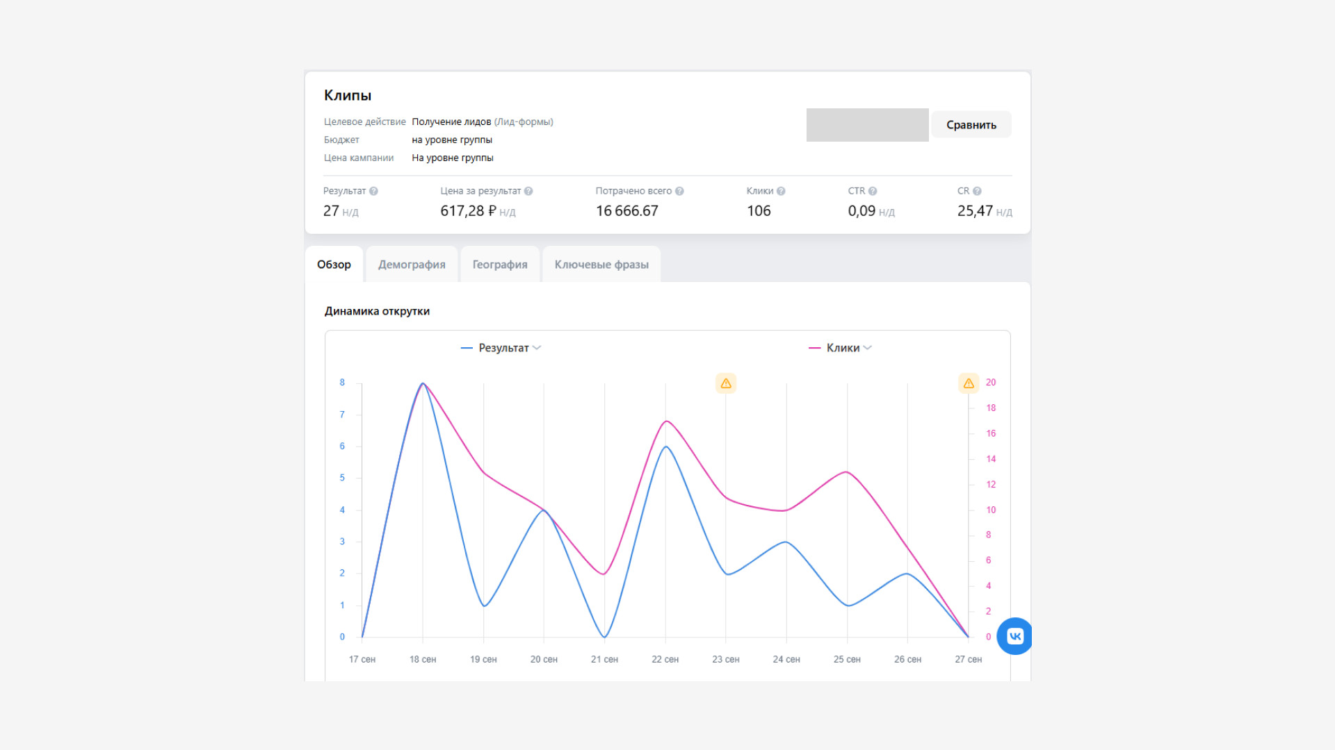 До нас реклама ВК не запускалась вообще. И это важно. Потому что в таком формате любой запуск — это стресс для клиента: