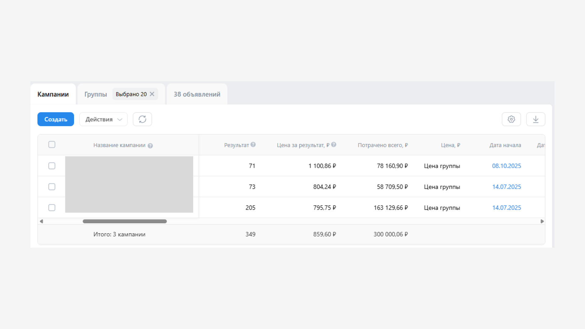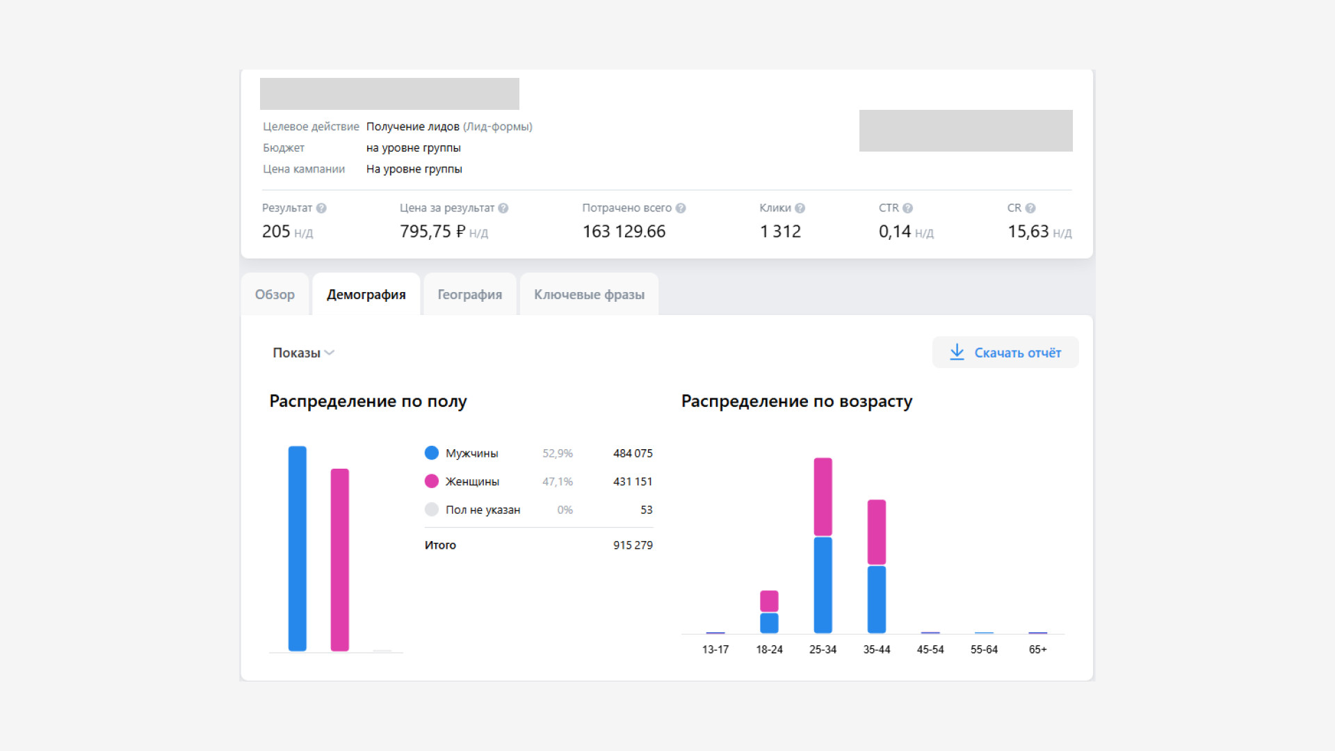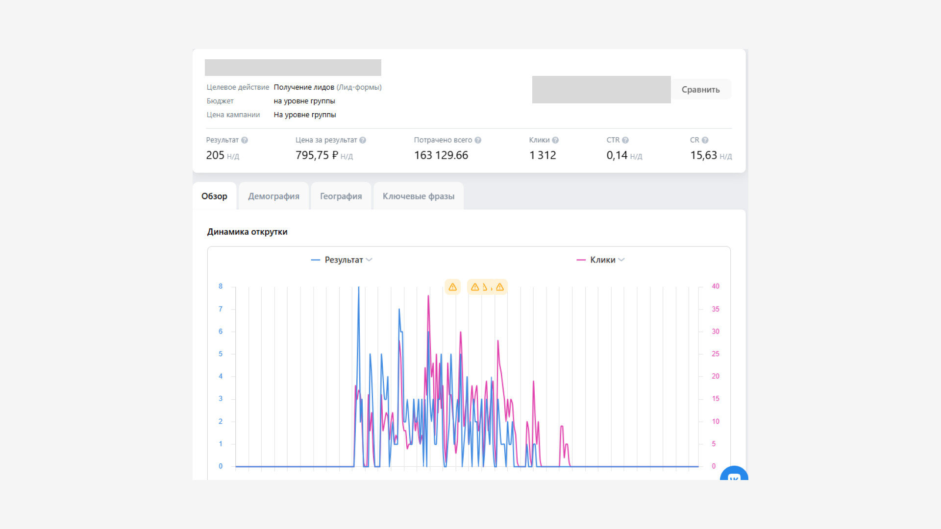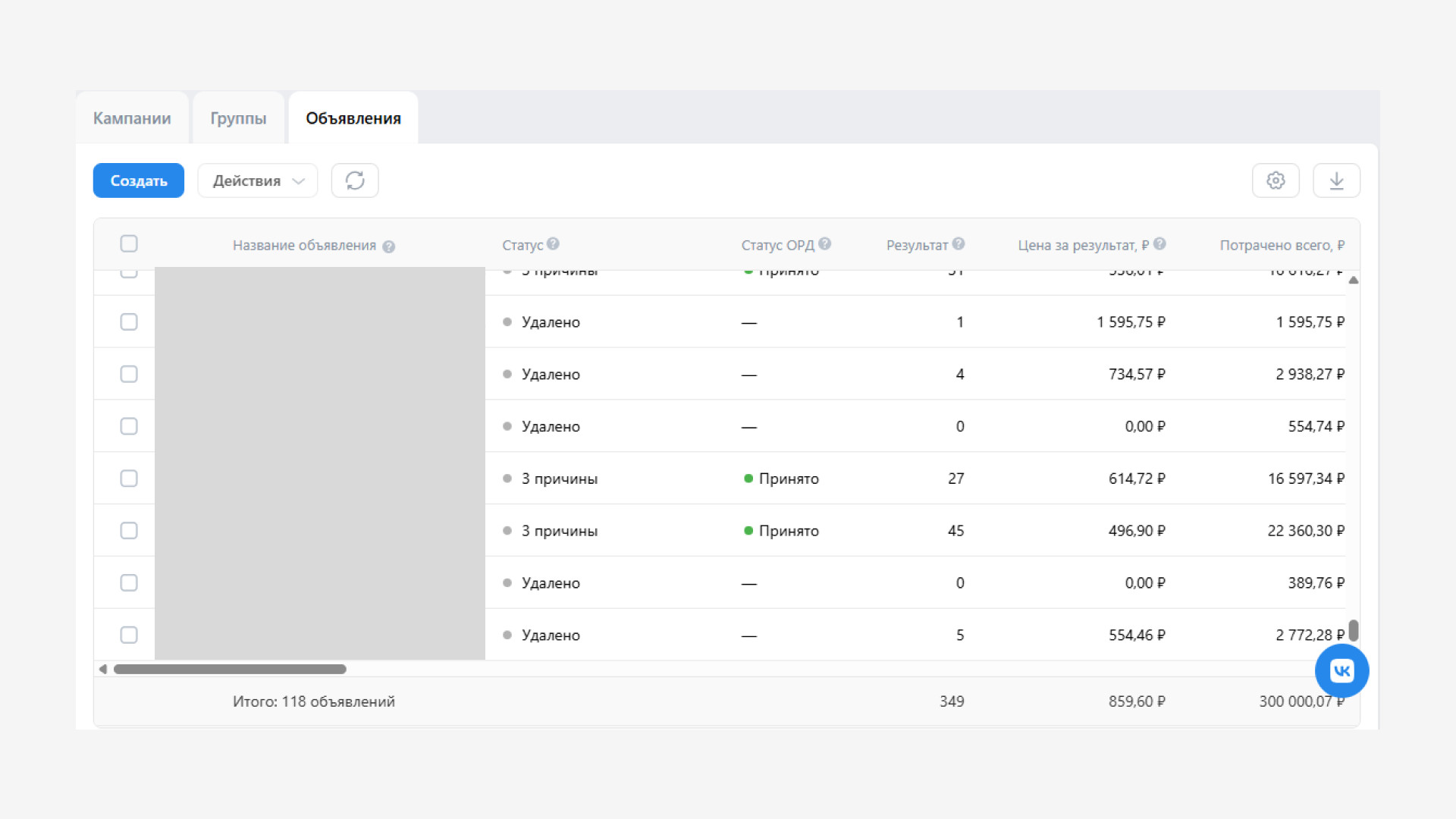 За этот период мы получили 349 заявок со средней стоимостью 859 рублей при бюджете 300 000 рублей. Но за сухими цифрами стоит выстроенная система, десятки тестов и найденная точка роста — клипы.