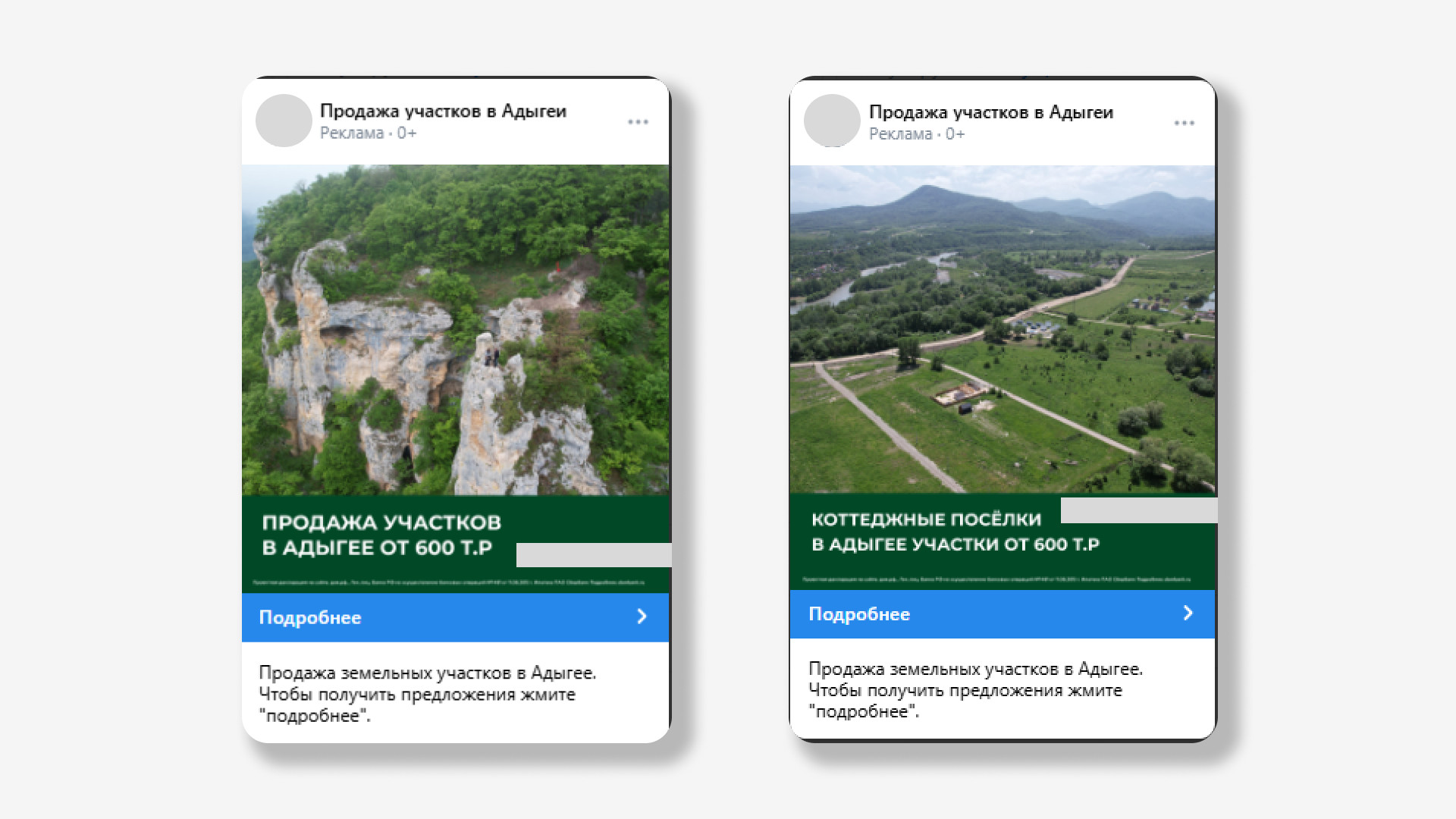 Ниже вы можете увидеть пример лид-формы. Заполненные заявки мгновенно передаются риэлтору, что позволяет оперативно связываться с потенциальными покупателями. Быстрый контакт значительно повышает шанс на успешную сделку. Ниже вы можете увидеть пример заявок, которые приходят на почту после того как человек заполнил лид-форму. Мы делаем акцент на простых и понятных вопросах, которые позволяют выявить интерес потенциального клиента, не перегружая его сложным заполнением. В форме используются универсальные формулировки, хорошо работающие на широкую аудиторию, например: При необходимости форма адаптируется под конкретные цели клиента — можно добавить дополнительные поля, которые помогут риэлторам точнее понимать запросы и мотивацию аудитории. Благодаря такому подходу, лид-формы делают сбор заявок быстрым, понятным и эффективным: с ними сразу видно, кто действительно заинтересован. Тут вы можете увидеть какие бывают заявки с лид-форм. Мы разделили объекты на три логических блока, чтобы бить точно в боли разных ЦА: Мы запустили сплит-тест: Клипы (вертикальное видео) и Статика (баннеры). Тут вы можете увидеть примеры статических креативов и видео клипов: Из-за малого объема аудитории по РФ, мы сфокусировались на Республике Адыгея. Очень часто риэлторы думают так: «А вдруг кто-то из Москвы захочет купить землю в Адыгее? Давайте покажем рекламу всем». Звучит логично. Но алгоритмы ВКонтакте работают иначе. Когда мы собираем аудиторию по интересам «ИЖС в Адыгее» или «купить участок в Майкопском районе», на уровне всей РФ она получается крошечной. Алгоритм начинает буквально «выцарапывать» людей, повышая стоимость показа и, как следствие, лида. Мы сознательно ограничили географию: — Республика Адыгея — Ростовская область Это позволило работать с более плотной, логичной аудиторией — теми, кто реально рассматривает переезд, дачу или инвестицию поблизости. Иногда масштаб — враг эффективности. Ниже вы можете увидеть статистику из рекламного кабинета: Что произошло с клипами. На рынке недвижимости клипы часто дают дешевые заявки. Но здесь сработала другая механика поведения. Во-первых, не во всех роликах оффер был озвучен в первые секунды.Во-вторых, часть видео больше показывала атмосферу, чем цену. А в сегменте земли цена — это триггер № 1. Человек листает ленту. Он не хочет «смотреть историю». Он хочет быстро понять — подходит ему это или нет. В итоге клипы дали 57 заявок по 786 ₽. Это рабочий результат, но не лучший. Почему статика победила? Тут вы можете увидеть скриншоты из рекламного кабинета: Точка Б: Система, которая генерирует деньги По итогам мы получили следующие показатели: Динамика: В первую неделю стоимость лида плавала в районе 900 рублей. После отключения неэффективных видео-креативов и масштабирования статики, мы снизили CPL почти в 2 раза к концу месяца. Помимо 120 контактов потенциальных покупателей, риелтор получил: Кейс в Адыгее подтвердил: даже в условиях ограниченного гео и узкой ниши можно получать стабильные лиды, если не бояться тестировать форматы. Мы нашли «золотую жилу» в статичных объявлениях с четким указанием цены и локации. Если вы работаете с земельными участками или ИЖС в регионах —важно не просто «запустить таргет», а выстроить модель, которая будет учитывать реальный объем спроса, особенности аудитори