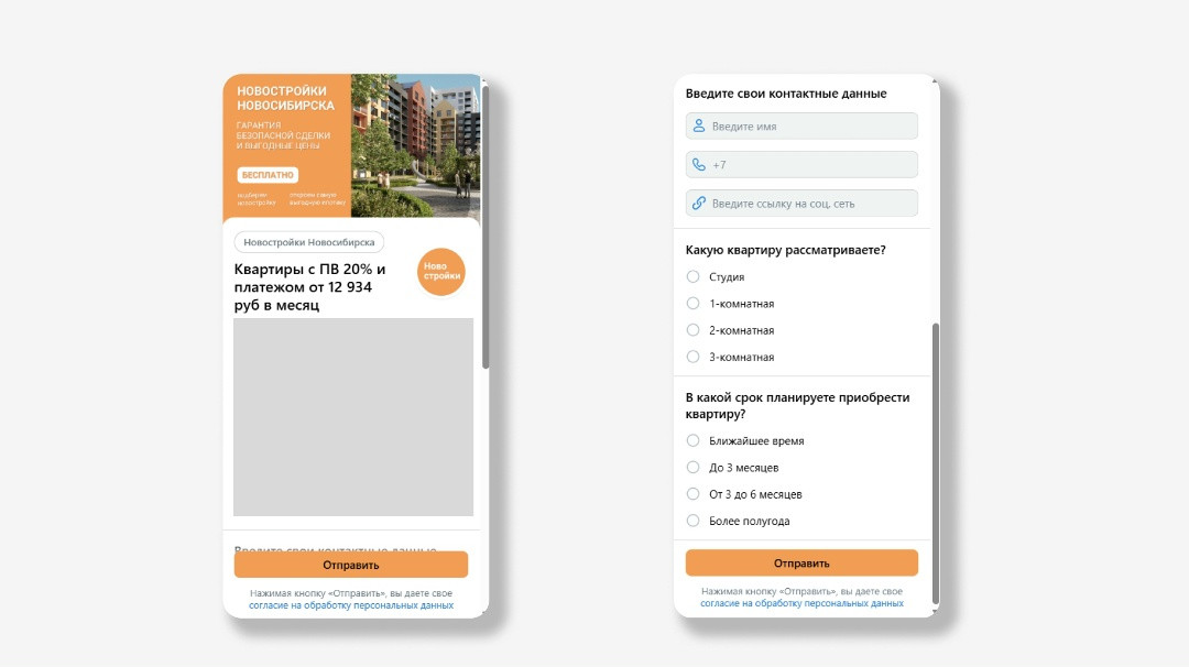 Риэлтор из Новосибирска. Привлечение клиентов на новостройки. Новосибирск и вся РФ (для тех, кто хочет купить квартиру в Новосибирске). За месяц мы получили: 37 заявок по 788 руб. Важно понимать: мы не продвигали конкретные жилые комплексы. В нише новостроек это частое ограничение. Застройщики не всегда разрешают использовать названия своих ЖК в рекламе. Поэтому мы сделали акцент не на объектах, а на услуге — подбор новостроек под клиента. Дальше ключевой момент. Люди не покупают «квартиры», они покупают понятные условия. Поэтому мы сразу перевели предложения в конкретные цифры, которые можно «примерить» на себя. Например, студии начинались от 2,7 млн рублей с платежом около 13 тысяч в месяц, однокомнатные — от 3,8 млн с платежом от 18 тысяч, двухкомнатные -от 4,8 млн и так далее. Эти цифры стали основой всей коммуникации. Отдельный акцент сделали на ипотеке. И не просто «выгодной», а максимально конкретной — семейная ипотека со ставкой 3,8%. Именно такие вещи цепляют внимание и заставляют остановиться в ленте. Мы сознательно упростили путь пользователя. Не вели людей на сайт, не усложняли сценарий. Весь трафик шёл в лид-формы ВКонтакте. После заявки клиент сразу звонил. Без задержек, без «напишите в WhatsApp», без потери контакта. И это тоже сыграло свою роль — в недвижимости скорость обработки напрямую влияет на деньги. Чем меньше действий нужно сделать человеку, тем выше конверсия и дешевле заявка. Это базовый принцип, но именно он часто даёт разницу в стоимости лида в 2–3 раза. Лид-формы. Этот формат позволяет получать заявки прямо внутри ВКонтакте, без перехода на сторонние сайты. После клика по рекламе пользователю сразу открывается форма, где он может оставить свои контактные данные. Ниже вы можете увидеть пример лид-формы. Заполненные заявки мгновенно передаются на почту клиента, что позволяет оперативно связываться с потенциальными покупателями. Быстрый контакт значительно повышает шанс на успешную сделку. Ниже вы можете увидеть пример заявок, которые приходят на почту после того как человек заполнил лид-форму. Мы делаем акцент на простых и понятных вопросах, которые позволяют выявить интерес потенциального клиента, не перегружая его сложным заполнением. В форме используются универсальные формулировки, хорошо работающие на широкую аудиторию, например: При необходимости форма адаптируется под конкретные цели клиента — можно добавить дополнительные поля, которые помогут риелторам точнее понимать запросы и мотивацию аудитории. Благодаря такому подходу, лид-формы делают сбор заявок быстрым, понятным и эффективным: с ними сразу видно, кто действительно заинтересован. Тут вы можете увидеть какие бывают заявки с лид-форм. На старте у нас не было задачи «сразу идеально попасть». Мы закладывали тест. Поэтому параллельно использовали два типа креативов. Часть видео записал сам клиент — классический формат «говорящая голова», где он объясняет условия, рассказывает про ипотеку, делится предложениями. Это добавляет доверия, потому что человек видит эксперта. Но, что интересно, лучший результат дал не этот формат. Сильнее всего отработал наш универсальный клип, где с первых секунд шёл чёткий оффер: семейная ипотека под 3,8%. Без длинных объяснений, без лишней информации — сразу в боль аудитории. Это важное наблюдение, которое многие недооце