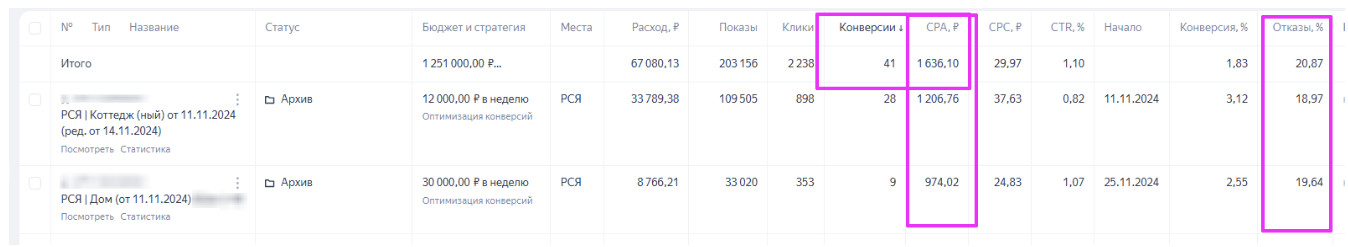 В процессе ведения проекта мы регулярно проводили анализ рынка: отслеживали изменения цен конкурентов, предложения по ипотеке, типы домов, сезонность спроса. Это помогало оперативно корректировать объявления и понять, какие УТП актуальны в регионе.