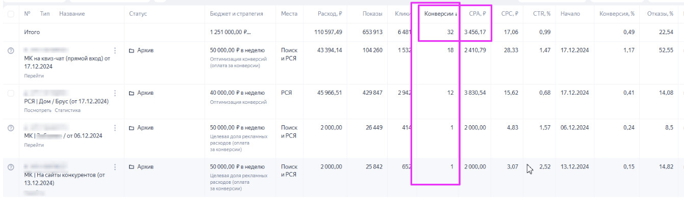 После изменения оффера цена поднялась до 6,9 млн ₽, и мы полностью перестроили кампании. Однако конверсии просели: всего 2 за неделю. Что изменили? Нашли причины: несоответствие контента и неподходящая логика квиза. Чтобы не терять трафик, внедрили квиз-чат.