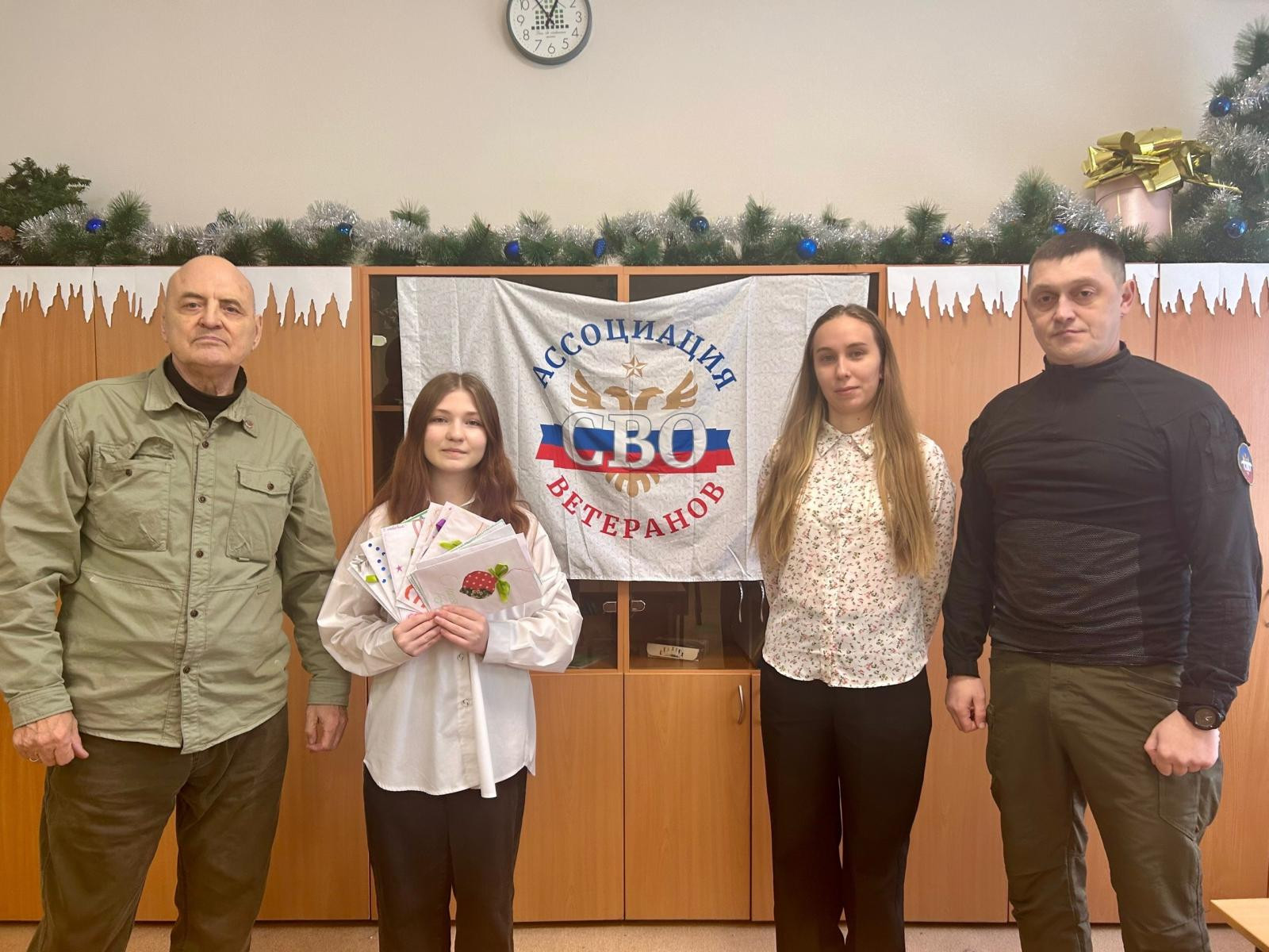 В Кирове школьники вручили ветерану Росгвардии открытки с новогодним поздравлением для военнослужащих