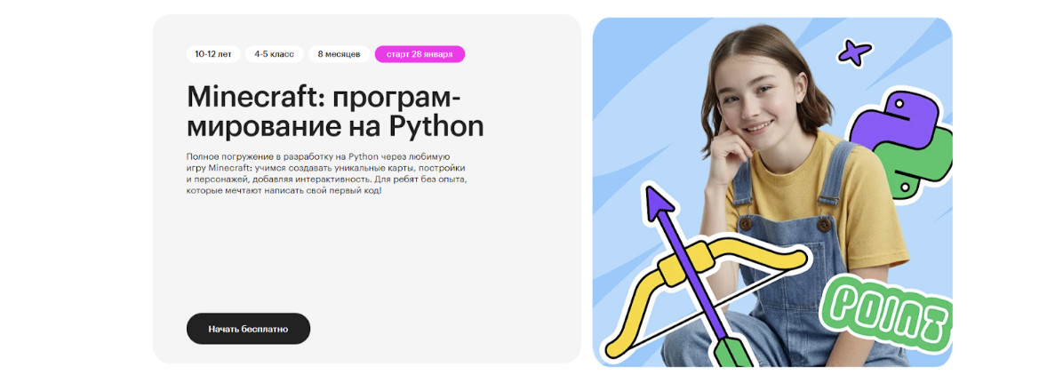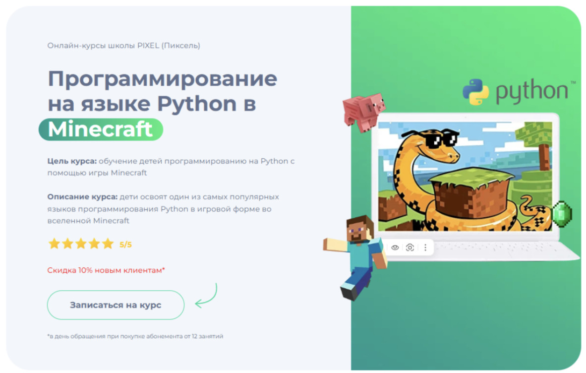 - Курс программирования на «Питоне» в Майнкрафте для детей 9 лет и старше