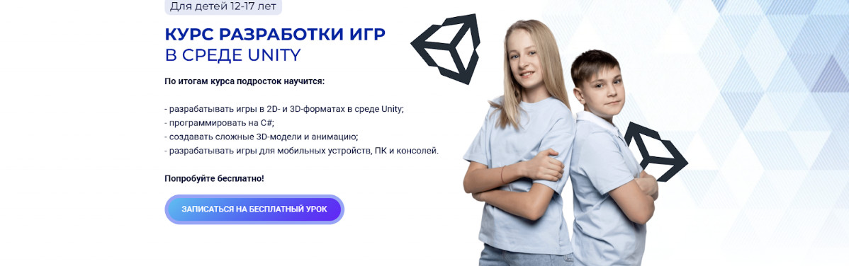 - Занятия по геймдеву в «Юнити» для ребят 12–17 лет