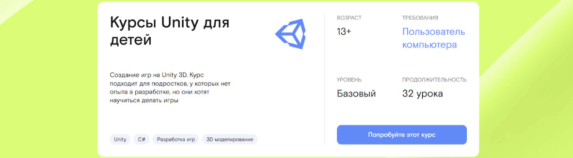 - Курс «Юнити» для детей от 12 лет