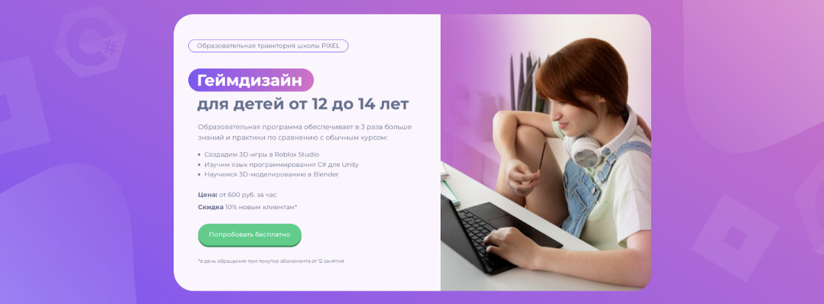 - Курс разработки игр для 12—15-летних детей