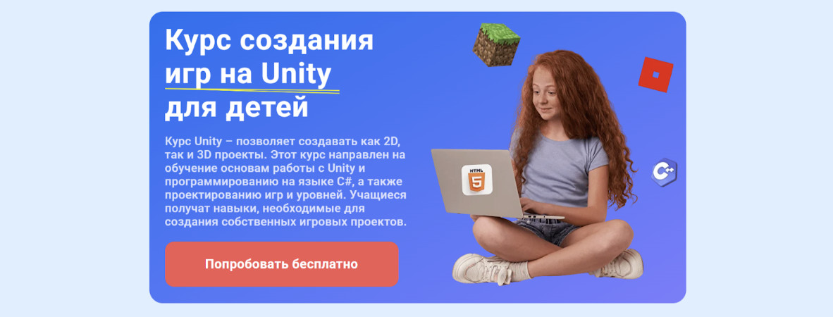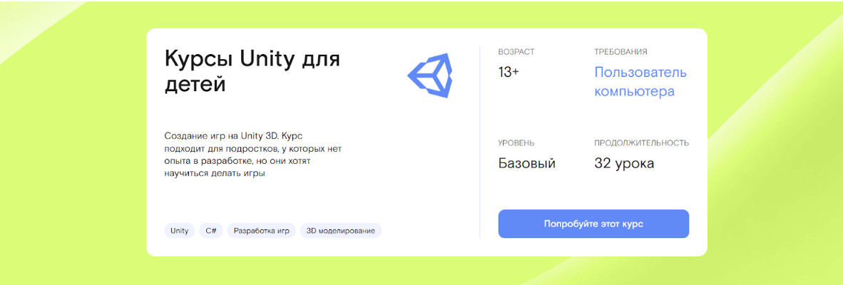 - Курс «Юнити» для детей 12 лет и старше