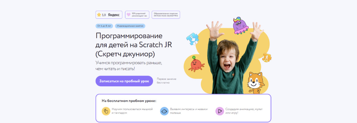 - Занятия по программированию на Скретч Джуниоре для детей 4–8 лет