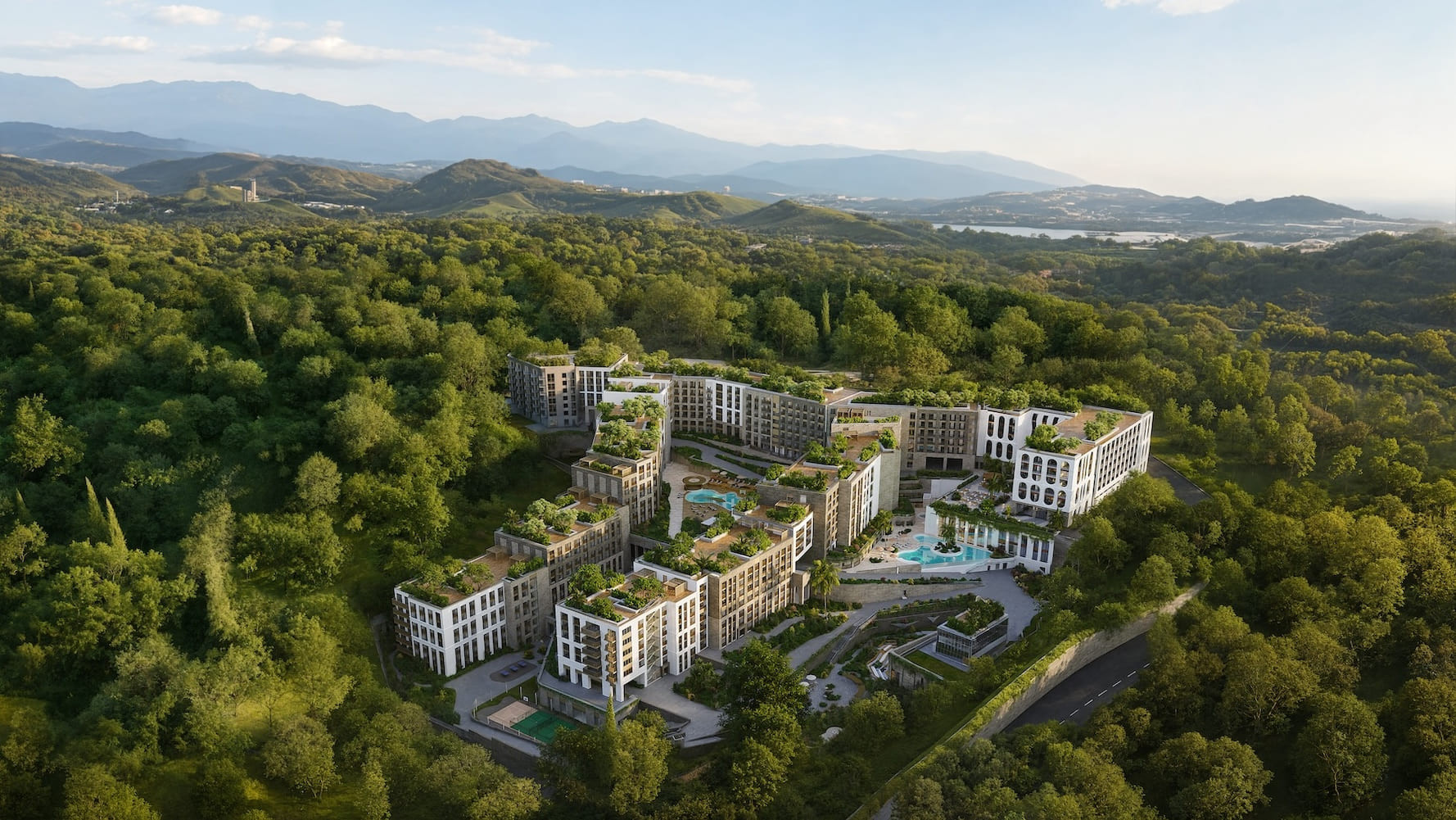 Комплекс строится в Адлерском районе Сочи, в окружении нормального жилого микрорайона. Не промзона, не чистое поле, не «мы потом всё достроим, честно-честно».