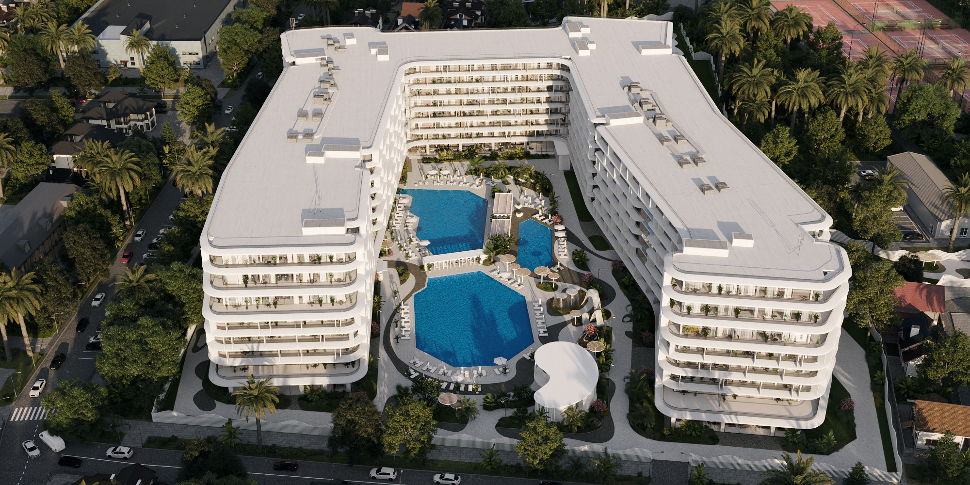 Центр Адлера. Не «10–15 минут куда‑то на машине», а реальный центр — со всей жизнью, ресторанами, набережной и ощущением, что вы в точке притяжения, а не на окраине «где подешевле».
