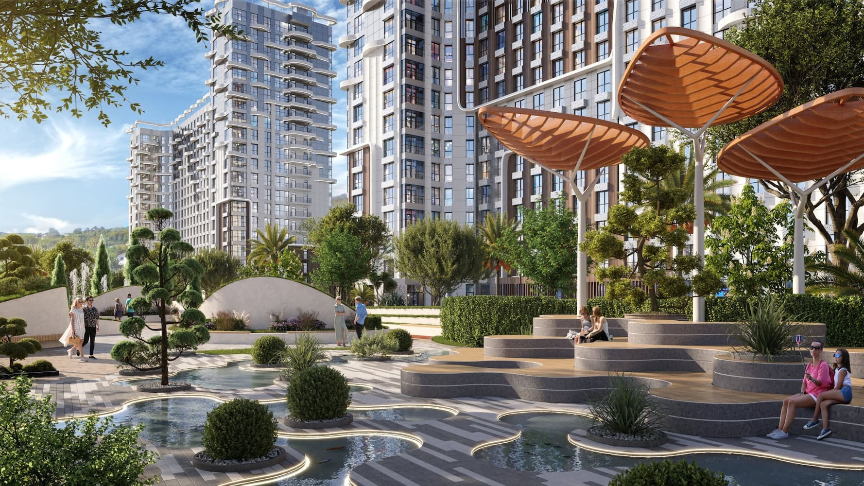 Комплекс строится на берегу реки Сочи, в микрорайоне КСМ, на улице Краснодонской. Локация — очень сочинская, в хорошем смысле этого слова: горная река, по которой я сама люблю купаться, и маршрут прогулок до Ореховского водопада. Это когда «пойдём прогуляемся» — это не до ближайшего ТЦ, а до места, которое даёт телу и голове перезагрузку.