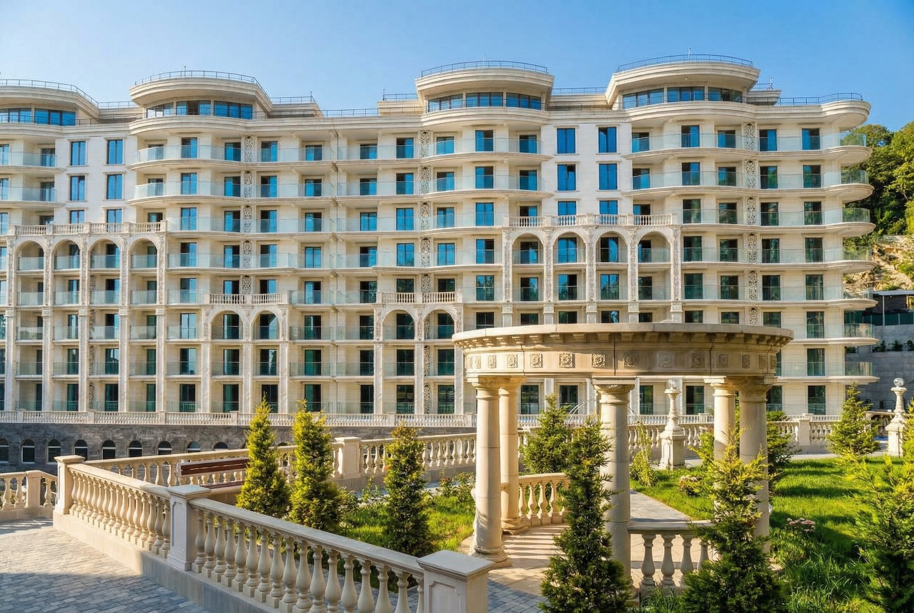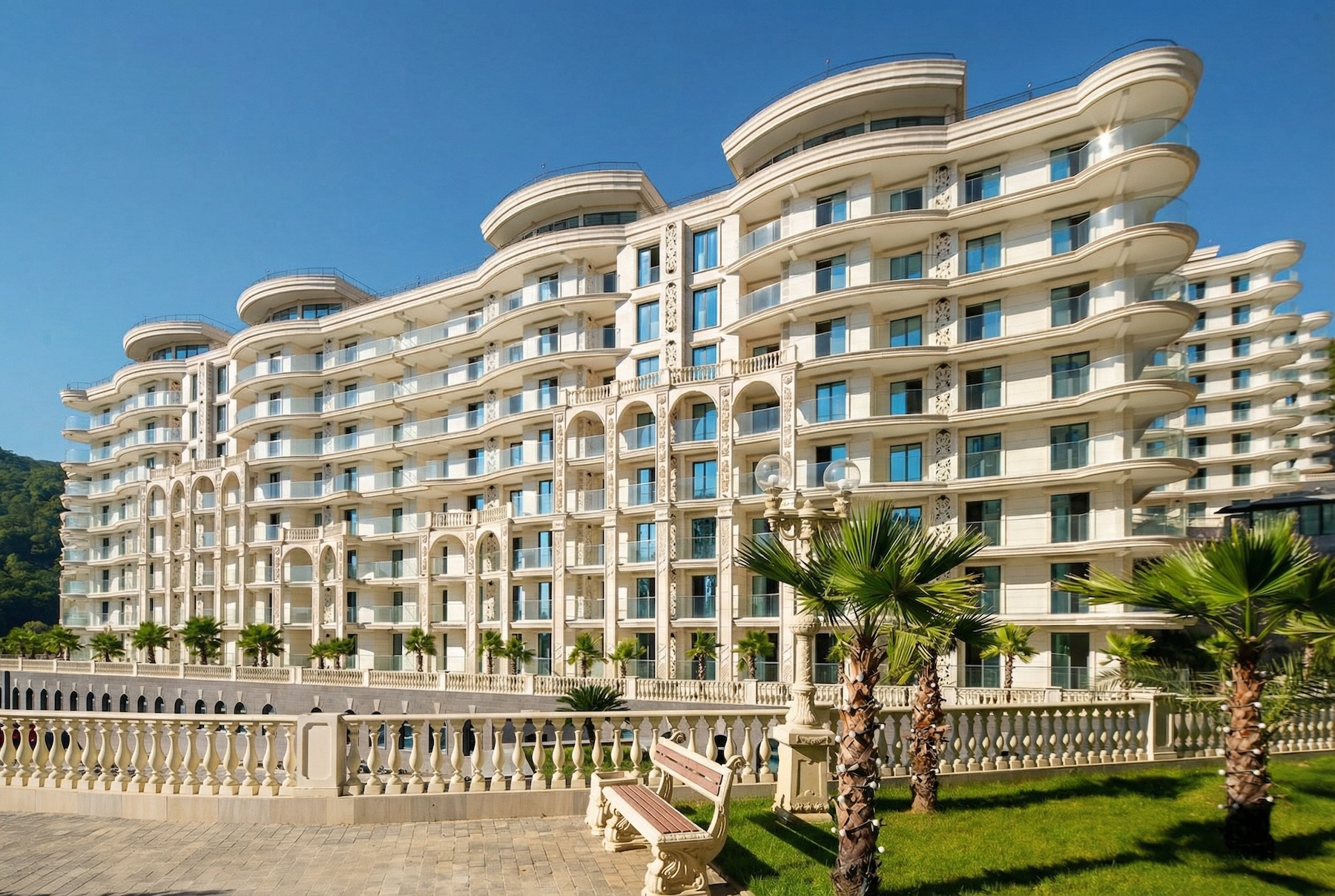 Но «Марина Гарден» в Хосте — история другая. Здесь, внезапно, все по-взрослому: корпуса уже сданы, не надо крутить пальцем у виска и гадать, достроят или нет. Получилось даже симпатично — архитектура без дизайнерских истерик, никаких стеклянных небоскрёбов в стиле «марсианская база для элиты». Сдержанно, чисто, классика, от которой не устаёшь.