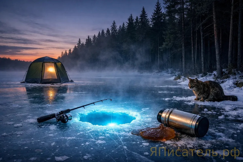 Первая лунка не дала ничего. Виктор сидел над ней час, потом два. Мормышка уходила в чёрную воду и возвращалась пустой. Он пересел ко второй лунке — тот же результат. Тишина была такой полной, что он слышал, как трескается лёд где-то далеко, у противоположного берега.