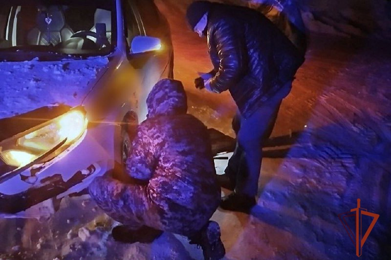 В условиях аномально холодной погоды экипаж вневедомственной охраны Росгвардии помог водителю, у которого произошла поломка автомобиля, заменить колесо.