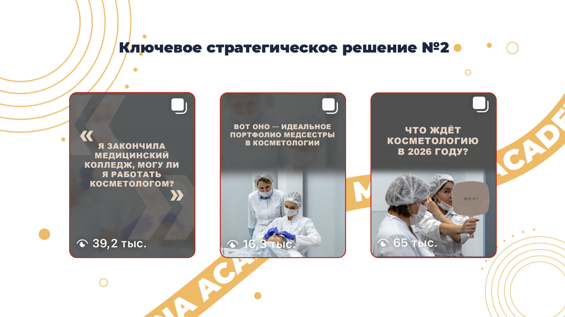 Вместо того чтобы гнаться за виральностью, мы сознательно сузили фокус. Мы задались вопросом: что заставляет практикующего специалиста не просто лайкнуть пост, а сохранить его или отправить коллеге? Мы сфокусировались на трёх главных проблемах аудитории: изменения в законах, юридические риски и работа с документами. Поэтому нашим главным KPI на старте стала не узнаваемость бренда среди широкой публики, а показатель сохранений и шеринга внутри профессиональных чатов. Мы полностью пересобрали контент-стратегию, сделав ставку на глубокий образовательный формат. Отказались от всего, что не решало конкретных проблем нашей аудитории. В фокусе оказались: Тактическое обоснование: Алгоритм Instagram любит Reels, но чтобы они работали в B2B, их содержание должно быть гиперрелевантным. Мы превратили их в «шпаргалки», которые стыдно не сохранить. Стратегическая цель: Преодолеть барьер недоверия. Для скептически настроенных профессионалов история реального человека — самый убедительный аргумент. Это не реклама академии, а доказательство её эффективности «из уст коллеги». Ключевое стратегическое решение № 2: Инвестиции в «вечнозелёный» контент вместо новостного. Мы разбирали «больные» темы: как медсестре переквалифицироваться в косметолога, что ждёт отрасль в 2026 году, как работать с новой маркировкой. Вместо сиюминутных новостей мы создавали цифровые методички — исчерпывающие руководства, актуальность которых исчисляется месяцами. Почему это сработало? Эффект не заставил себя ждать. Системная работа, основанная на этих решениях, принесла измеримый рост по всем фронтам. Рост аудитории и авторитета: За полгода мы выросли с 300 до 14 800+ подписчиков. И это не случайные люди. В декабре, например, мы получили +532 новых подписчика, а за первые 19 дней января — уже +577. Что важно: отток оставался низким, а значит, контент действительно «зацеплял» и был нужен. Органический охват и вовлечение (прямое следствие стратегии № 2): В декабре общее число просмотров контента составило 443 668. Ключевой показатель здесь — 53,8% этих просмотров пришлось на неподписчиков. Это прямое доказательство, что наш акцент на глубоком, сохраняемом контенте заставил алгоритм Instagram работать на нас.А в январе всего за 19 дней мы охватили 75 975 аккаунтов — прирост +18,4% к предыдущему периоду. Просмотры за этот неполный месяц составили 262 092. Профиль как точка конверсии (подтверждение стратегии № 1): Самые красноречивые цифры — это действия пользователей. За период с 13 по 31 декабря взаимодействия с профилем выросли на +88,8% и достигли 3 175.Но важнее даже не это. Мы отслеживали конкретные бизнес-действия, которые подтвердили, что мы привлекаем не просто зрителей, а потенциальных клиентов: Люди, получив экспертную ценность, начинали путь к покупке: шли на сайт, смотрели, где находится академия. В январе эта логическая цепочка завершилась 60 прямыми обращениями в директ за 20 дней. Заявки перестали быть случайностью — они стали системным результатом движения по спроектированной нами «контент-лестнице»: от решения профессиональной проблемы через экспертизу к доверию и действию. И что получилось? Мы построили в соцсетях отдел контент-маркетинга и PR, который: Мы заменили хаотичные публикации на осмысленную архитектуру контента и доказали, что даже в такой узкой и требовательной нише. Если хотите, 