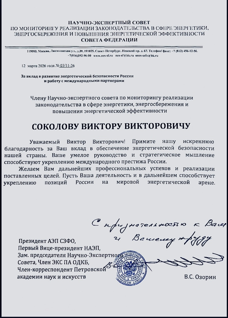 «За вклад в развитие энергетической безопасности России и работу с международными партнёрами» — написано в письме. И это не дежурные слова. За ними — годы работы, сотни аналитических записок, десятки статей, тысячи часов переговоров с партнёрами из Африки, Ближнего Востока, Азии.