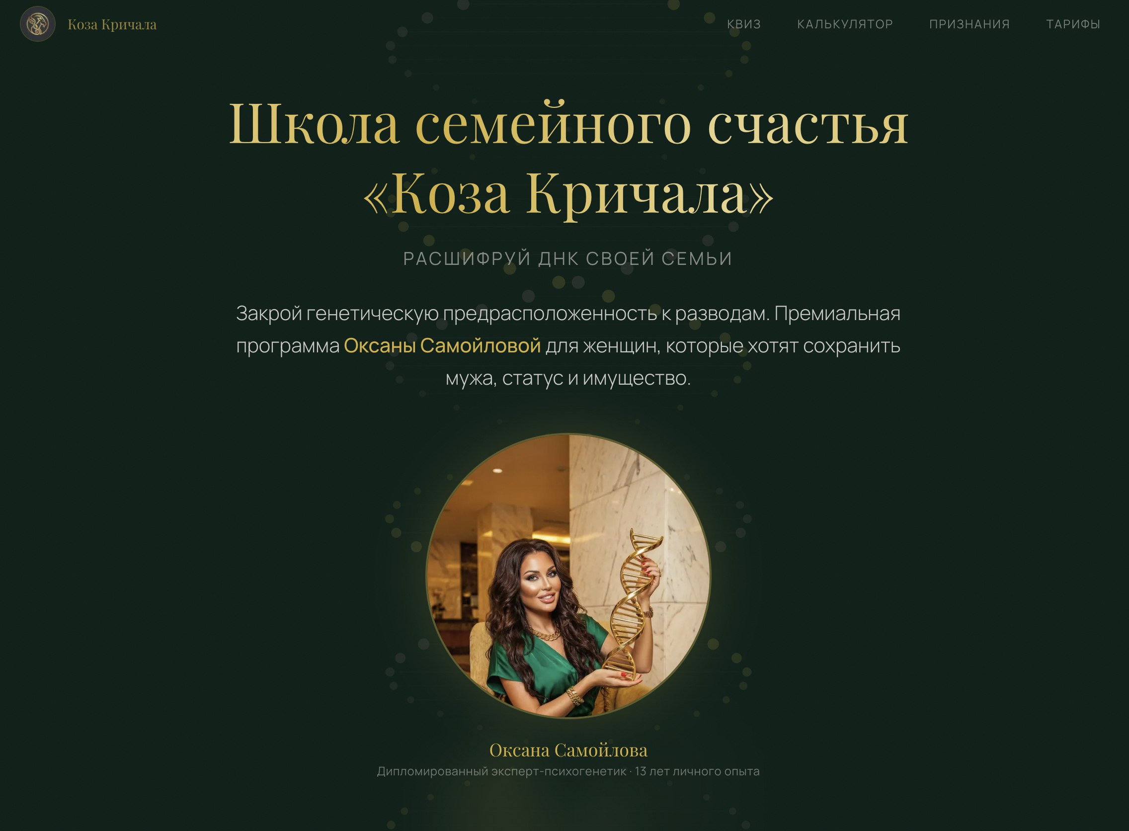 Концепт сайта для курсов семейного благополучия от Оксаны Самойловой