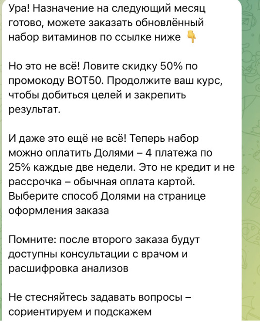 Вот поэтому автоворонки в мессенджерах стали стабильно эффективным инструментом (ну, как минимум в моей работе). Это инструмент для сбора базы, донесения ценности и одновременно геймифицированный путь до покупки.