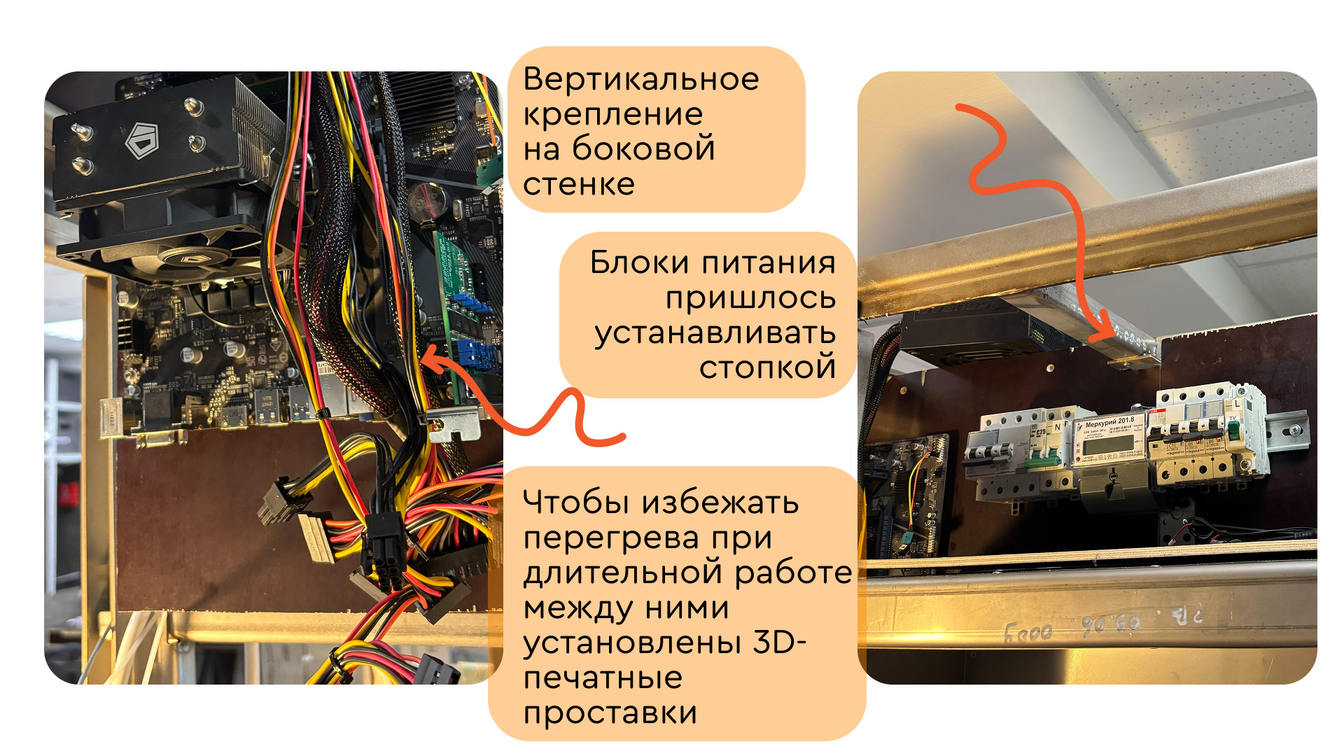 Каждый компонент — от материнской платы до блоков питания — должен поместиться, не создавая перегрева и помех соседним узлам. Стандартная ориентация материнской платы не помещалась по габаритам.