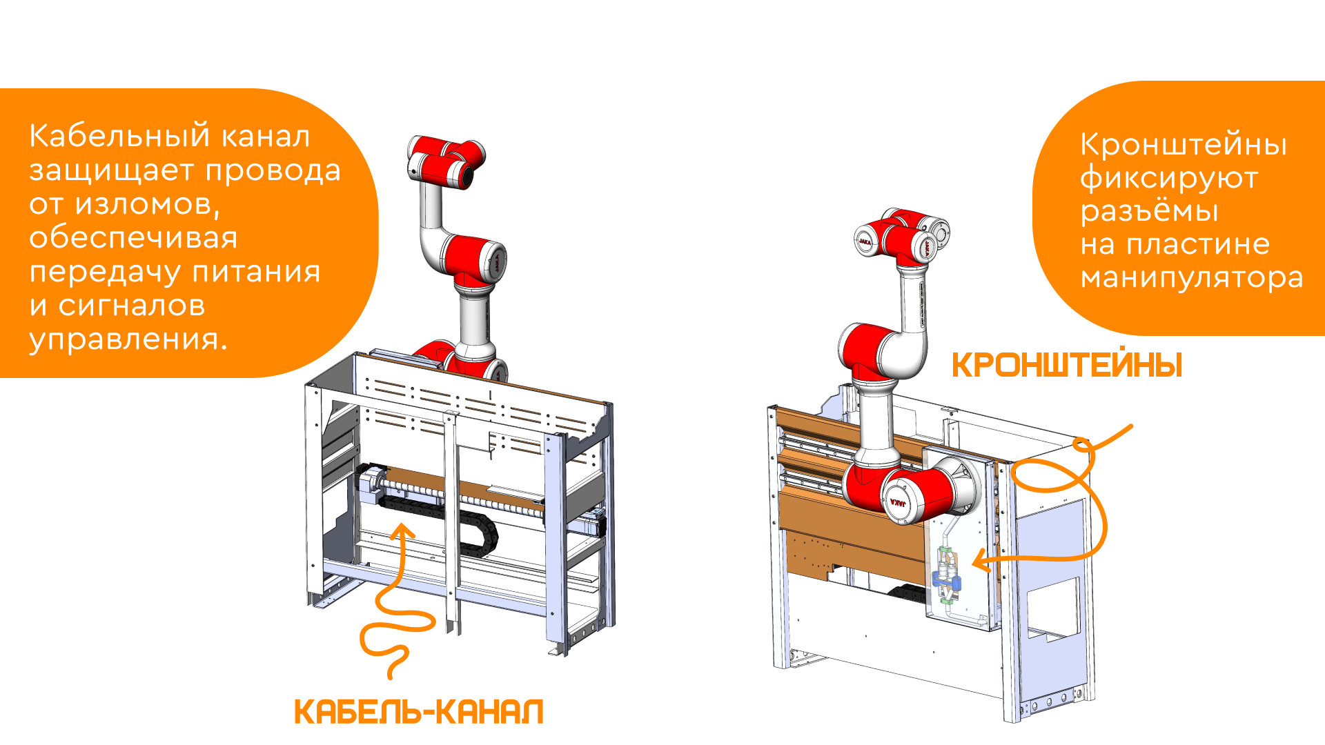 - кронштейны для фиксации разъёмов, установленные прямо на пластине манипулятора.