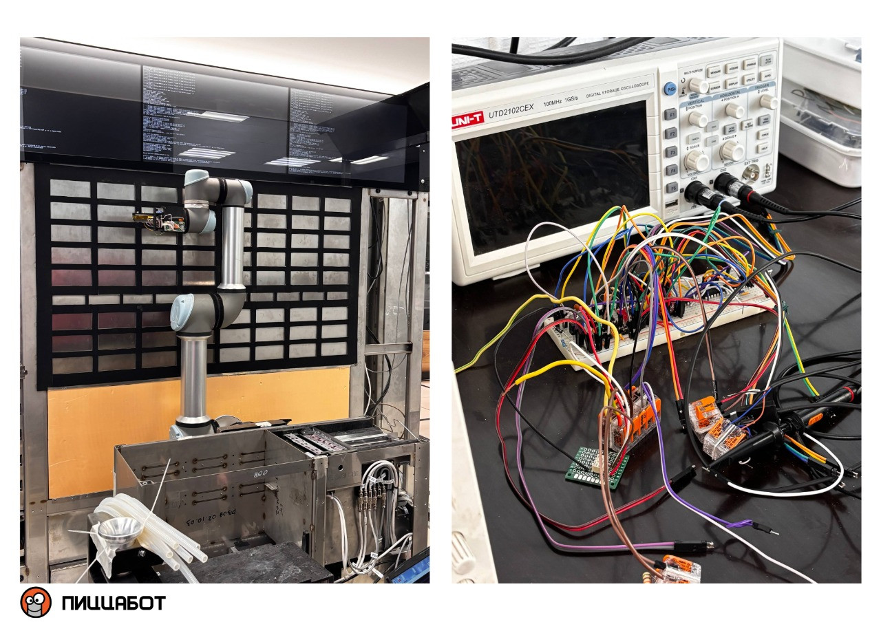 Далее мы переработали схему и уточнили логику работы контура. После этого повторные тесты показали нужный результат. Плата аварийного контура была собрана в финальном исполнении и интегрирована во второй киоск. Здесь мы проверяем его работу в составе всей системы — вместе с 7-й осью, манипулятором и остальными узлами. Мы собираем киоск «ПиццаБот» как систему, в которой риски не накапливаются с ростом, а контролируются на уровне конструирования. Если вам близок наш подход, приглашаем вас к сотрудничеству — пишите нам в сообщество ВКонтакте.