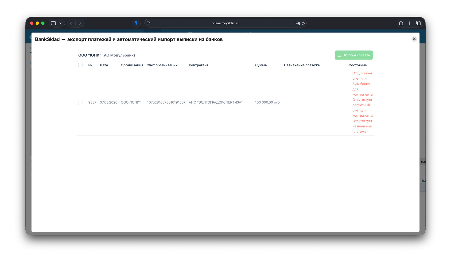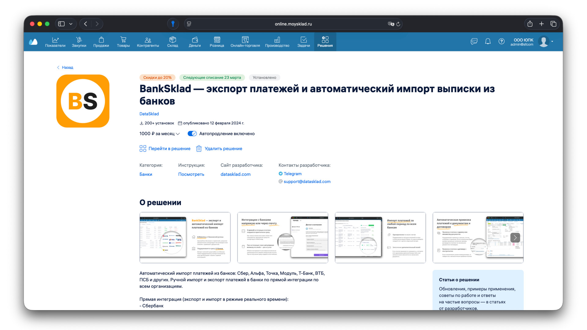 BankSklad: автоматизирует работу с платежами в МойСклад