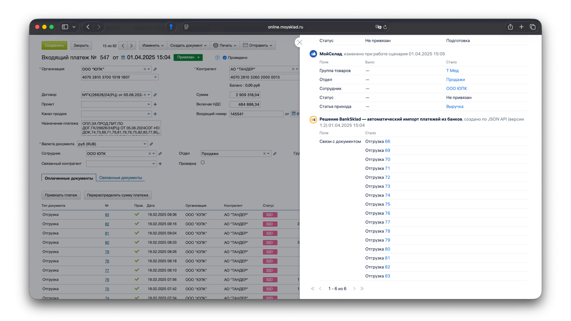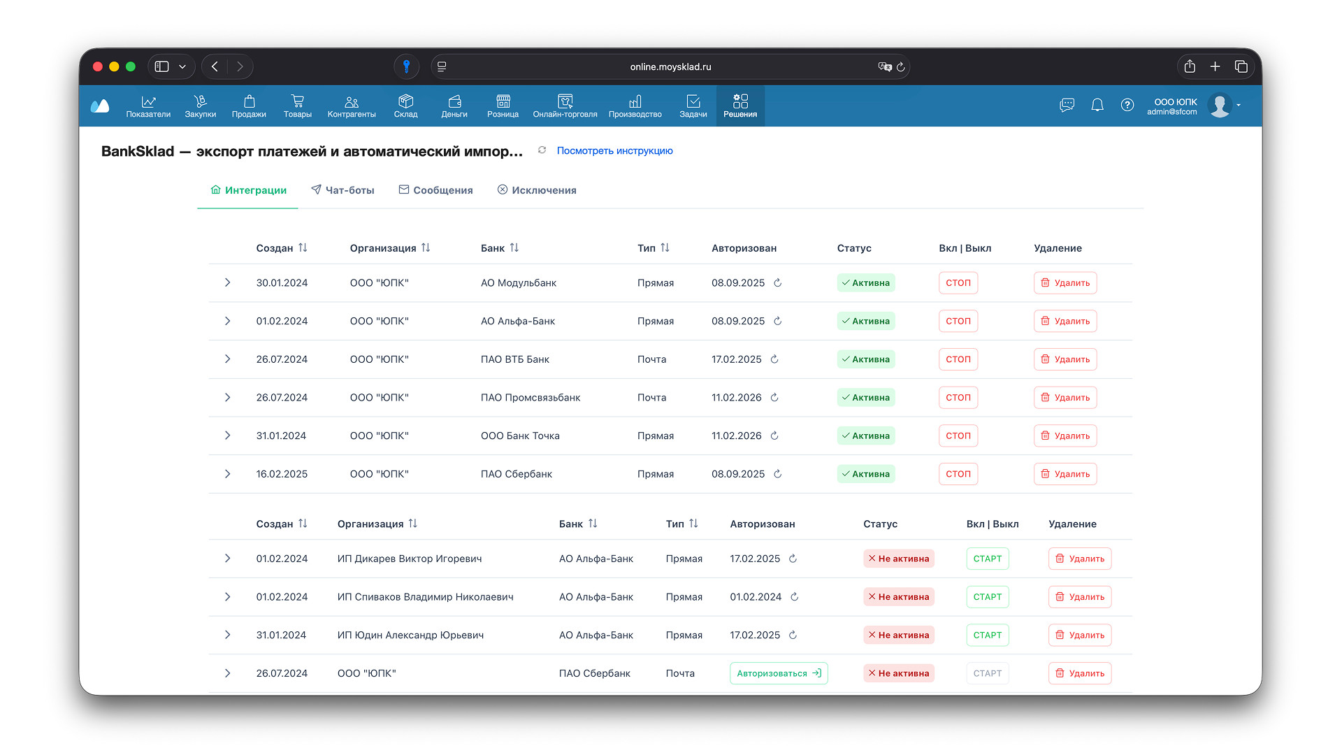 Мы вот вместе с партнером вместо сушеных овощей снова начали производить мед, только без добавок. А на мед у меня аллергия, и не скажу, что он мне сильно нравится)) За 14 лет в предпринимательстве я успел стать: В статье расскажу: Если посмотреть, как многие компании ведут учёт в системе «МойСклад», то станет понятно, почему в их процессах есть хаос и бардак. Расскажу, как была выстроена работа у меня и моих коллег, и с какими проблемами сталкиваются предприниматели до сих пор. Как я и говорил выше, наша с партнером компания занимается производством меда. В определенный момент мы впервые получили заказ от федеральной сети, и объем производства резко увеличился. Нам понадобились кредитные средства, чтобы оплатить сырье и производить продукцию под заказы сетевых магазинов. В пике у нас дошло до 25 кредитов в разных банках. Каждый из кредитов подразумевает под собой открытие счета и обязательство для сохранения процентной ставки: необходимо провести энное количество платежей в каждом из банков. И можно представить, какой это ад: ежедневно заходить в каждый банк, делать выписку по расчетному счету, возвращаться обратно в «МойСклад» и импортировать её туда. Плюс в основном банке у нас было 5-6 отдельных расчетных счетов для разных целей: на одном скапливались доходные деньги, на другом кредитные, на третьем сырьевые и дальше по списку. В день доходило до 100 платежей, и ежедневно я тратил почти все рабочее время, чтобы все выписки попали в «МойСклад». Чтобы хоть как-то автоматизировать работу, я дал офис-менеджеру доступ к банкам и делегировал этот процесс. Дать доступ к огромной сумме денег — идея так себе, но другого варианта я не видел. И теперь каждый день офис-менеджера начинался с того, что она открывала банки, запрашивала выписки, загружала их в «МойСклад» и делала это каждый раз, как приходил новый платеж. Например, контрагент оплачивал заказ, и выписку необходимо было загрузить в «МойСклад», а после привязать к сделке, чтобы менеджер увидел, можно ли отгружать товары. Естественно, офис-менеджер не всегда проводила платежи день в день, потому что некоторые клиенты платили вечером или после обеда. При больших объемах отгрузки каждое такое ожидание в несколько дней — это просто потеря прибыли. Меня это раздражало, время сотрудника убивалось практически полностью, потому что каждый день она занималась абсолютно бесполезной рутиной. При этом был еще ряд минусов, о которых расскажу дальше. Когда начинаешь считать часы сотрудника, который ежедневно занимается выписками и загрузкой платежей, становится неприятно. Если человек получает в среднем 40—60к в месяц и большую часть времени тратит на импорт и экспорт платежей, в год набегает нехилая сумма: минимум 480 000 рублей. А сверху ещё можно добавить налог на доход и страховые начисления, тогда ЗП сотрудника выйдет под 70-90 тысяч. И это только прямые расходы за оцифровку всех документов, которые по сути уже существуют в системе банка. К сожалению, зарплата лишь верхушка айсберга, которую можно точно посчитать. К ней добавляется: Время ожидания и «простой» отгрузки Сотрудники склада ждут подтверждение оплаты, дергают меня или офис-менеджера, чтобы уточнить статус. Если платежа нет в МойСклад, значит заказ не оплачен. Склад не отгружает его, менеджер не может уверенно ответить клиенту, когда отпра