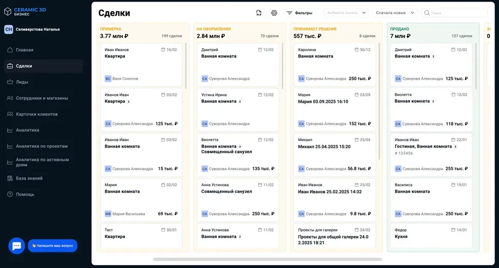 становится эффективным, и менеджеры в магазинах доводят клиентов до сделки. Ceramic 3D Бизнес — это система