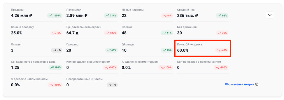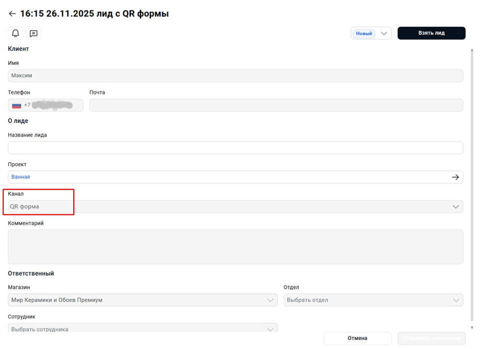 реклама c QR формой → запрос клиента → проект → сделка → выручка и