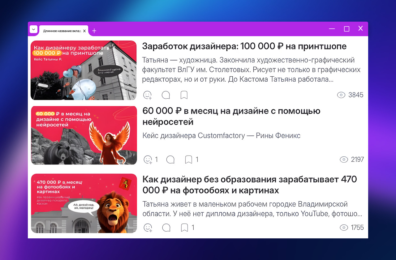 VC.ru, DTF и Дзен. В итоге остановились на Дизайнерс.ру. Оказалось, что