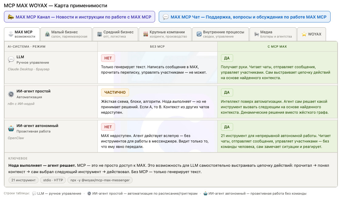 MCP-сервер для мессенджера MAX по URL – наше всё! Карта применимости