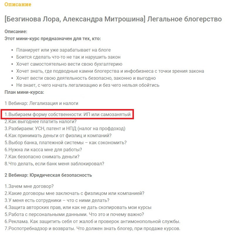 пункт вебинара — там чудная формулировка: «Выбираем форму собственности: ИП или