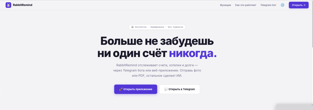 Когда у тебя десятки мелких платежей (хостинги, домены, сервисы, налоги), календарь превращается в свалку. RabbitRemind забирает на себя роль узкопрофильного ассистента, который следит только за тем, чтобы деньги уходили вовремя и без переплат.