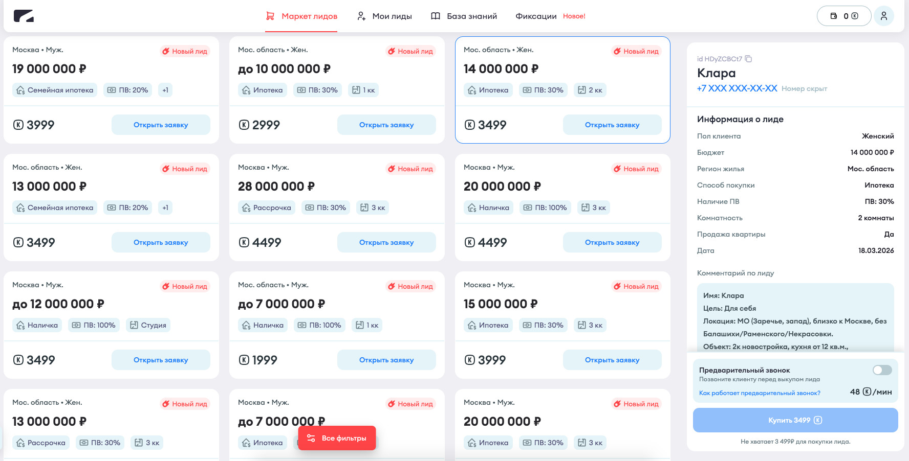 Отдельный и быстро растущий сегмент рынка — платформы, которые агрегируют лиды из различных рекламных каналов и предлагают их конечным покупателям в формате каталога. По сути, это маркетплейс: с одной стороны — поток входящих заявок, с другой — брокеры, агентства и застройщики, готовые эти заявки приобрести.