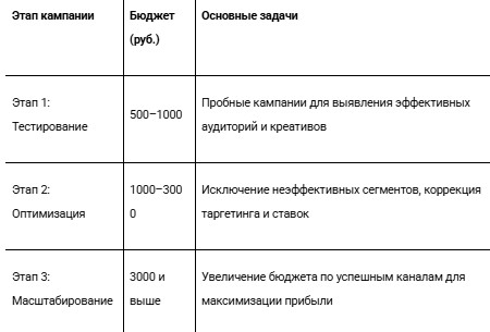 - Рекомендации по эффективному расходованию бюджета для максимального возврата инвестиций.