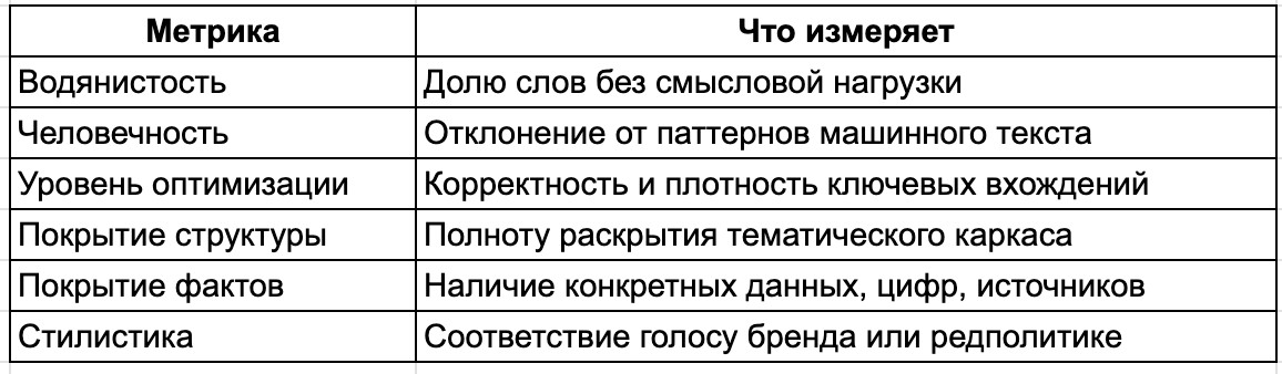 Текстовые метрики с целевыми порогами. Это ядро системы. Агент работает с предустановленным набором: Для каждой метрики задаётся целевой процент. Агент не останавливается, пока не достигает заданного порога по всем активным параметрам. Это принципиально отличает его от генератора, который просто выдаёт текст и считает задачу выполненной. RAG-базы знаний. Под каждый проект — своя база: материалы клиента, исследования ниши, конкурентный анализ, брендбук. Агент обращается к ней при генерации. Фактическая точность без галлюцинаций на пустом месте. Ресёрч и системы контроля качества. Агент подключает внешние проверки как модули. Нужна проверка уникальности — подключается. Нужен анализ читаемости — подключается. Архитектура модульная, каждый блок независим. Системные промпты в стиле .cursorrules. Каждый агент получает файл с инструкциями: правила голоса, запреты, приоритеты. Разные агенты для разных задач — разные файлы. Система не смешивает их между собой. Смотрите на скрин. Агент не просто запускает генерацию. Он анализирует входные данные, оценивает текущее состояние по каждой метрике, формулирует конкретные задачи — и начинает итерации. Выглядит это примерно так: «повысить покрытие фактов с 34% до 80%», «снизить водянистость с 22% до 8%». Наш пиздюк проанализировал, подумал, поставил себе задачки — и пошёл делать. Это недетерминированная система. Агент не идёт по жёсткому скрипту «шаг 1 → шаг 2 → шаг 3». Он принимает решения в зависимости от состояния метрик на каждом этапе. Именно поэтому такой подход называется агентным, а не пайплайновым. Разница между агентом и n8n-автоматизацией примерно такая же, как между GPS-навигатором и бумажной картой с заранее нарисованным маршрутом. Бумажная карта не знает о пробке на третьем повороте. Представьте пирамиду с двумя уровнями. Основание — промпты, цепочки, инструменты, шаги, коннекторы, условия. Всё то, что разработчик традиционного генератора собирает вручную под каждый сценарий. Когда вы используете n8n или любой другой пайплайновый инструмент, вы работаете именно здесь. Каждый новый кейс требует новой сборки. Вершина — цели, метрики, контекст. То, что понятно человеку без технического бэкграунда. Традиционные инструменты вынуждают пользователя спускаться в основание: писать промпты, чинить связи, пересобирать флоу при каждом изменении задачи. Если разработчик сервиса не предусмотрел ваш конкретный кейс — вы в тупике. Система не подойдёт, потому что разработчик генератора просто ещё не дошёл до вашего кейса и не собрал нужный сценарий, где будут шаги 1, 2, 3 — и не будет 4, 5, 6. Наш агент переворачивает эту логику. Пользователь работает с вершиной пирамиды: задаёт цели, выставляет метрики, описывает контекст. Всё, что ниже, система берёт на себя и пересобирает под задачу самостоятельно. Практический вывод: если ваш кейс нестандартный — агент не сломается. Он адаптируется, потому что не привязан к жёсткому сценарию. Вы сами подрегулируете систему под себя, и она будет работать. «Недетерминированность — это не баг, это архитектурное решение. Жёсткий пайплайн даёт предсказуемость, но ломается на граничных кейсах. Агент с метриками как целевой функцией адаптируется к задаче — а не требует, чтобы задача адаптировалась к нему.» Разработка идёт итерациями. Тестирую архитектуру на реальных проектах 