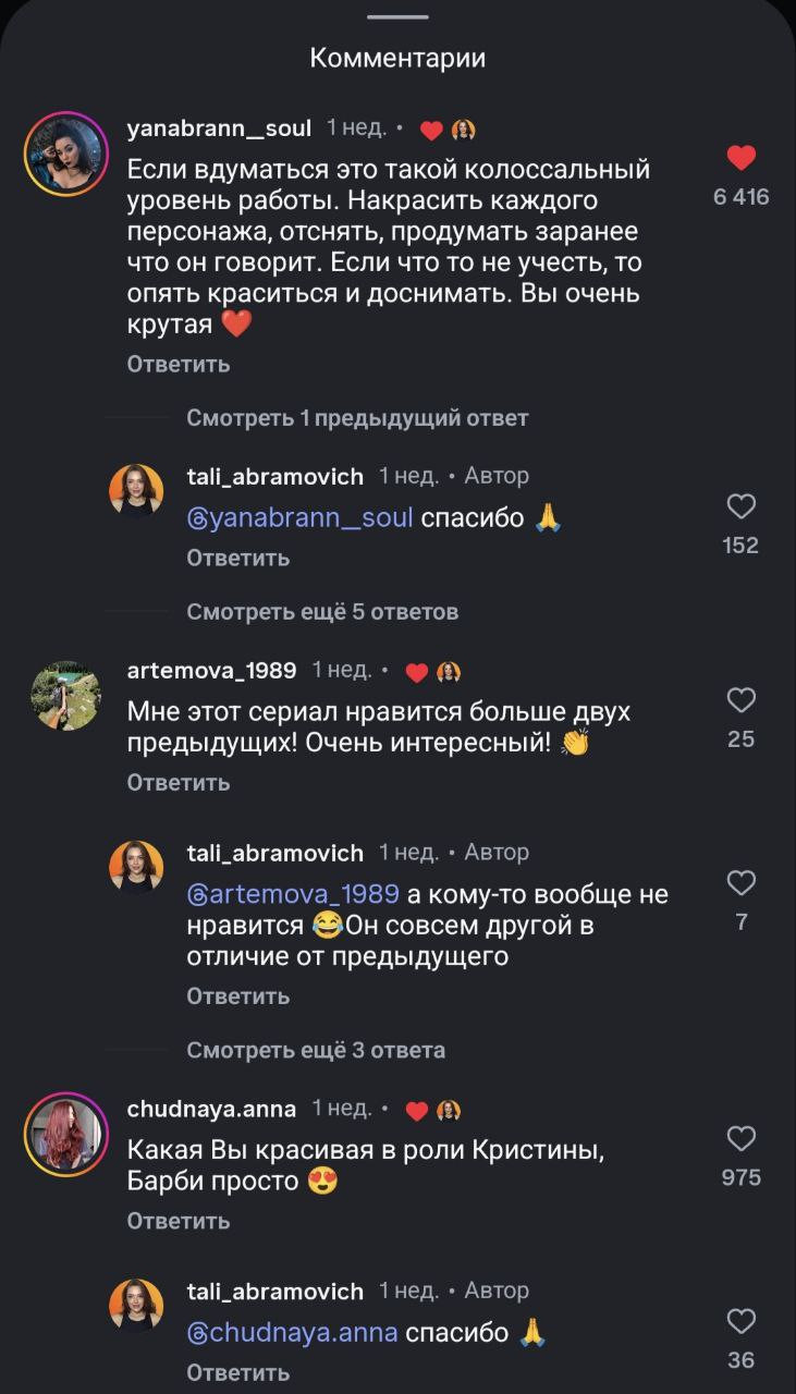 Недавно у меня так получилось с мини-сериалами блогера Тали Абрамович (настоящее имя -Наталья).