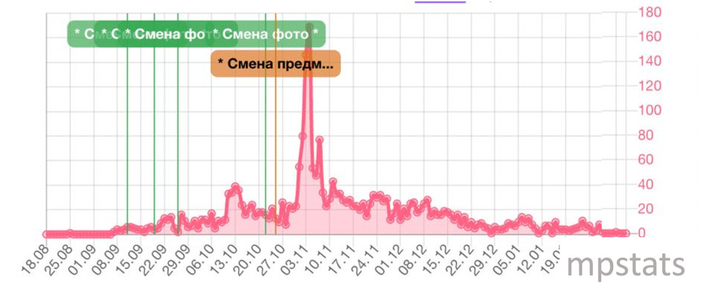Один заказ обошёлся в среднем в 287 ₽ при среднем чеке 8 000 ₽. Львиную долю выручки — более 21 млн — принёс артикул-локомотив, остальные товары в склейке распродались в ноль.