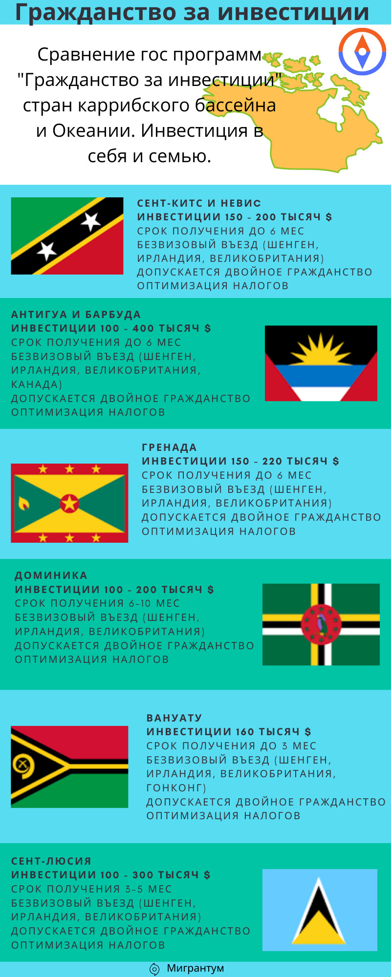 Сравнение государственных программ "Гражданство за инвестиции" государств Карибского бассейна и Океании