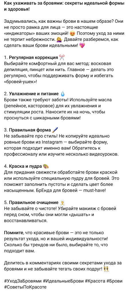 - Специализация на постах для социальных сетей: В отличие от универсальных инструментов, наш бот создан именно для создания контента для соцсетей. Это значит, что вы получаете посты, которые действительно работают и привлекают внимание вашей аудитории.