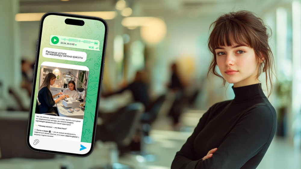 Но у меня для вас хорошие новости. Сейчас есть решение, которое может спасти ваш контент-план и нервы — бот в Telegram с искусственным интеллектом, который помогает салонам делать готовые посты буквально за минуту. Причем без специальных навыков. Всё просто: голосом, текстом или даже через фото.