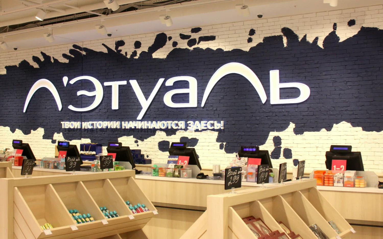 Одним из решающих стратегических шагов стало расширение бизнеса через поглощения. В 2020–2022 годах группа «Алькор и Ко» приобрела сеть магазинов эконом-сегмента «Подружка», выкупив 100% компании «Табер Трейд», управляющей этой сетью. До сделки «Л’Этуаль» охватывала преимущественно сегмент парфюмерии и косметики среднего и премиального уровня, тогда как «Подружка» специализировалась на доступной косметике и товарах для ухода. Сохранение бренда «Подружка» и её самостоятельного позиционирования позволило группе охватить дополнительную аудиторию без ребрендинга приобретённой сети. В результате объединения общее количество торговых точек под управлением «Алькор и Ко» превысило 1600 магазинов, что существенно укрепило присутствие компании на рынке. Важно, что масштабирование сопровождалось не только ростом числа магазинов, но и расширением географии. Сегодня сеть присутствует в более чем 250 городах России. Даже в сложные периоды компания не сворачивала планы развития. Например, в 2022 году, несмотря на турбулентность рынка, «Л’Этуаль» анонсировала открытие 50 новых флагманских магазинов. Такой агрессивный рост, поддерживаемый продуманной стратегией, позволил бизнесу нарастить масштабы и удерживать лидерство. Финансовые результаты отражают эффективность стратегии: с 2016 года «Алькор и Ко» ежегодно выплачивала акционерам дивиденды на уровне миллиардов рублей (в 2023 году — рекордные 12 млрд руб.), что свидетельствует о высокой прибыльности и устойчивости бизнеса. С самого начала брендинг сети «Л’Этуаль» был ориентирован на создание образа доступной роскоши. Французское название L’Etoile («звезда») и стилистика оформления магазинов задавали ассоциации с гламуром и изяществом, привлекая женщин, желающих выглядеть ухоженно и готовых инвестировать в качественную косметику. В 2000-е годы на российском рынке парфюмерии и косметики практически не было сетей с подобным премиальным флером, и «Л’Этуаль» заняла эту нишу одной из первых. Бренд быстро стал узнаваемым: покупательниц привлекали широкий выбор мировых марок, красивые витрины и атмосфера косметического бутика. В то же время ценовая политика сочетала премиальность с доступностью — сеть регулярно проводила акции и скидки, формируя лояльность у широкой аудитории. Со временем, чтобы оставаться актуальной для новых поколений клиентов, бренд нуждался в обновлении. К 25-летнему юбилею компании было принято решение о масштабном ребрендинге. В 2023 году «Л’Этуаль» обновила фирменный стиль — логотип и слоган. Новый логотип выполнен более лаконичным шрифтом: из написания убрали французский апостроф и вычурные буквы разной высоты, сделав надпись «Лэтуаль» современным простым шрифтом. При этом фирменная сине-белая волна на логотипе сохранилась как узнаваемый элемент преемственности. Кардинально изменился слоган: вместо «На одной волне с тобой!» теперь используется короткое обещание — «совершенно всё». В нём отражена идея о невероятно широком ассортименте товаров (буквально «всё, что угодно» есть в магазинах сети), а также намёк на совершенство внутренних процессов компании. Ребрендинг проводился инхаус-командой и был интегрирован во все точки контакта: от оформления витрин и интерьеров магазинов до обновления дизайна мобильного приложения и интернет-магазина. Это обновлени