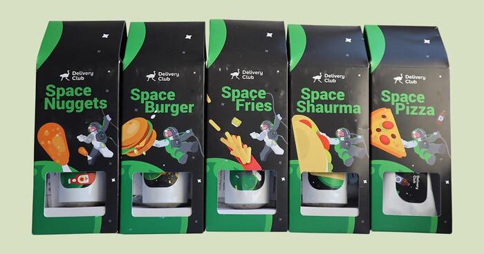 дизайном на космическую тему. Банковские организации выпускают карты с изображением ракет и планет — например, «Сбер» и «Тинькофф» оформляли карты в честь запуска спутника ReshUCube2. Сервис доставки Delivery Club пошёл ещё дальше и выпустил лимитированную линейку еды в тюбиках «как у космонавтов» со вкусами шаурмы, пиццы и картошки фри. Это не только дань истории (космонавты и правда ели из тюбиков), но и игровой ход, вызывающий у потребителя улыбку и интерес попробовать. В сфере моды космический тренд тоже на высоте. Например, Московский Музей космонавтики совместно с UNIQLO