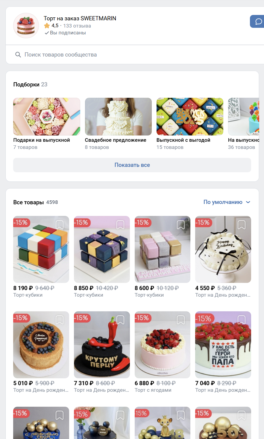 требование — товары должны соответствовать тематике сообщества и правилам (нельзя продавать запрещённое). Если у вас услуг много, вы фактически получаете бесплатный интернет-магазинчик прямо на странице сообщества, что очень удобно для подписчиков. Используйте товары, чтобы показать свой ассортимент. Например, если у вас сообщество пекарни