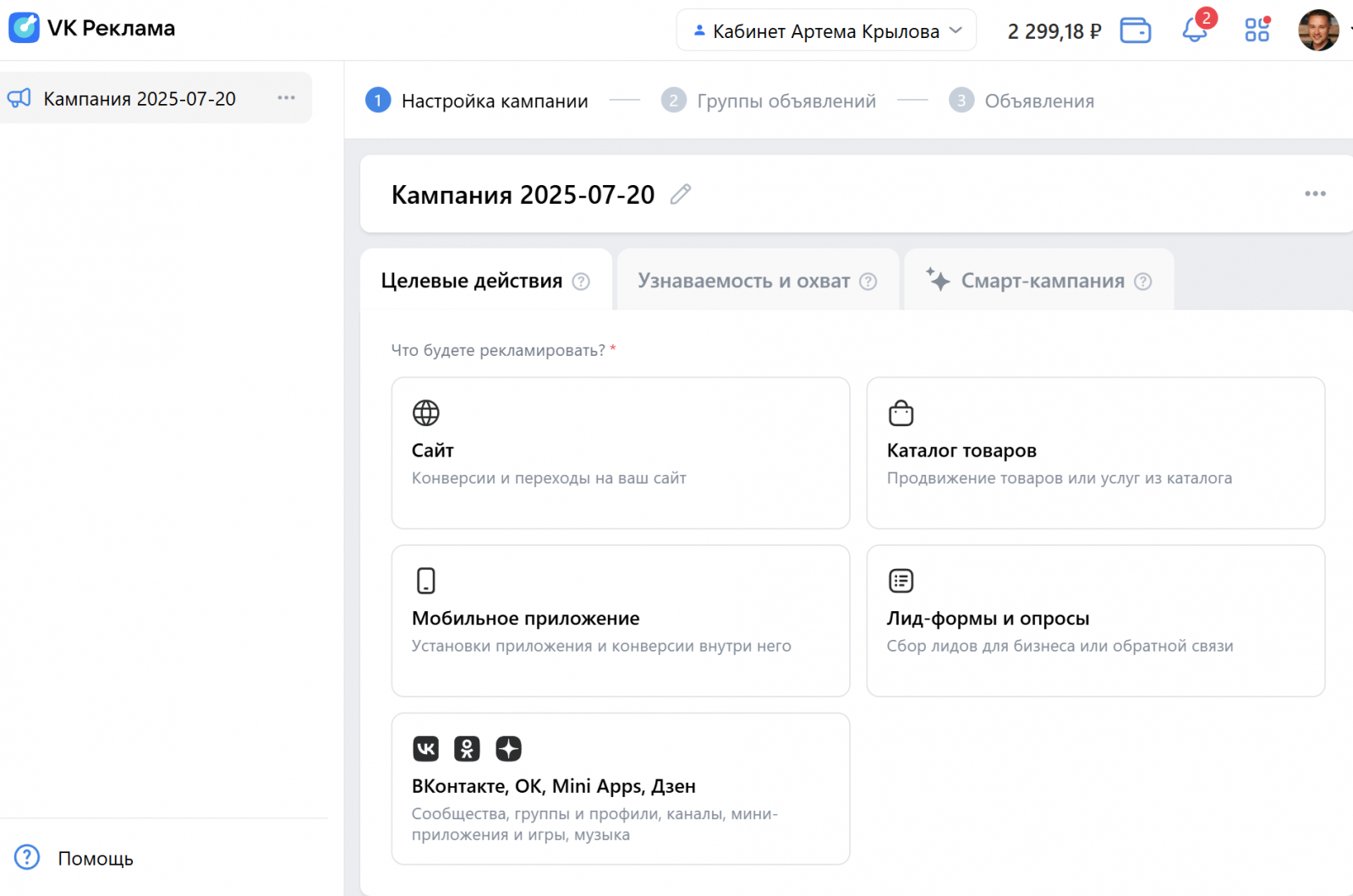 новое объявление: выбираете формат (например, рекламная запись в новостной ленте или объявление в виде карточки), указываете ссылку (на своё сообщество или конкретный пост), заголовок, текст и картинку для рекламы. Далее настраиваете таргетинг — то есть кому показывать. Например: женщины 25-45, Москва и область, интересы «кулинария», или подписчики конкурирующего кулинарного паблика. VK Ads покажет примерный охват — сколько человек подходит под эти критерии. Затем устанавливаете бюджет — сколько денег готовы тратить в день или за всю кампанию, и цену за клик или за 1000 показов. Не бойтесь, можно начать с