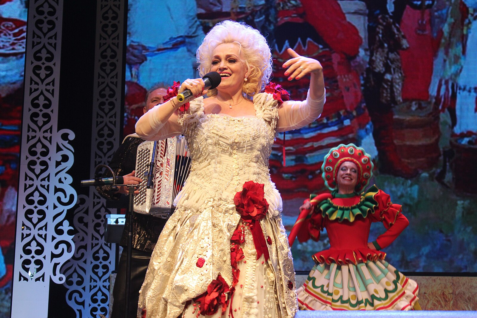 Надежда Кадышева и ансамбль «Золотое кольцо» на сцене: яркое костюмерованное шоу превращает концерт в настоящий «фолк-рэйв», объединяя несколько поколений поклонников. Это наглядный пример того, как традиционный контент может быть представлен в эффектном формате для современной публики.