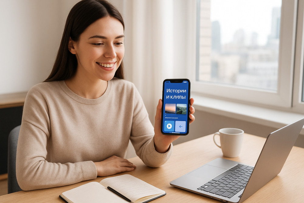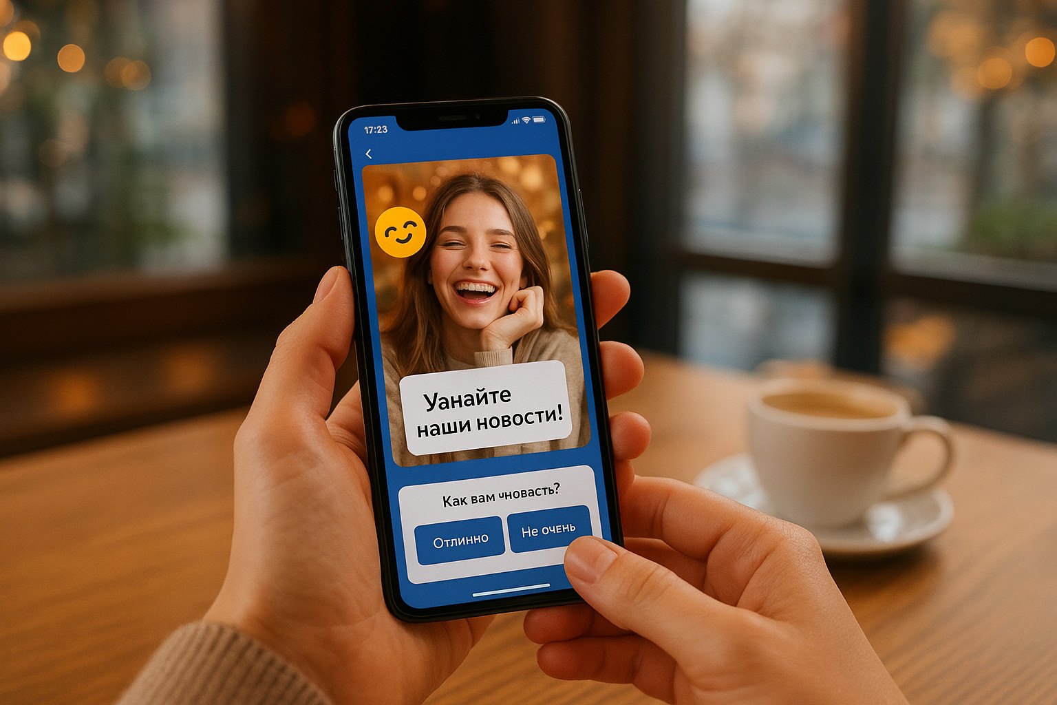 • Вовлечение: опросы, стикеры, тесты, кнопки перехода.